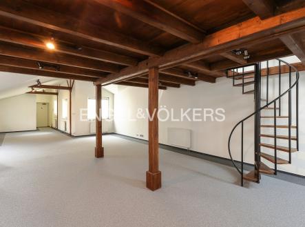 K dlouhodobému pronájmu nabízíme kancelářské prostory v Rooseveltově ulici. Do budovy se vchází z ulice, kde se po schodech dostaneme do 5. nadzemního podlaží. Po pravé straně se nachází zázemí se sprchovým koutem, toaletou, kuchyňkou a skladem. Před námi je open space kancelář s galerií. Vytápění je lokální plynové. V okolí je veškerá občanská vybavenost v docházkové vzdálenosti. Parkování je možné v parkovacím domě Rychtářka. Využijte jedinečnou možnost pronájmu kanceláře s galerií v centru města.