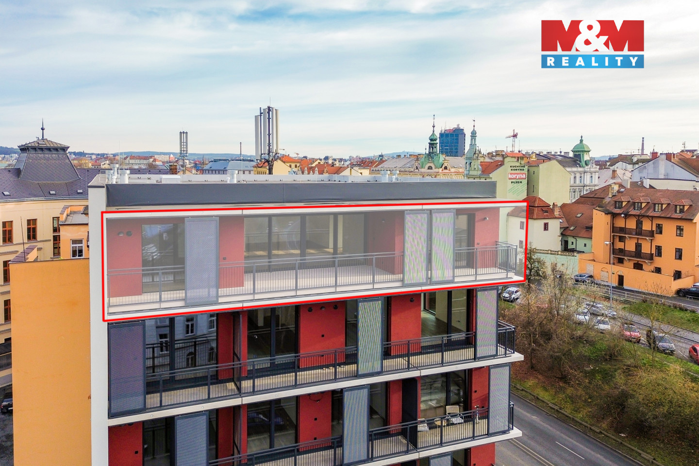 Nabízíme k prodeji exkluzivní prostornou jednotku 3+kk (pokrývá celé 8.NP) novostavby domu s výtahem. Byt skýtá překrásný výhled na centrum Plzně, včetně katedrály sv. Bartoloměje. Celá budova (16 bytů) je postavena z kvalitních materiálů a se skvělým zpracováním, na což dává developer důraz. Ohřev vody dálkově, celá budova je vytápěna podlahovým vytápěním. Byt se skládá z prostorného obývacího pokoje + kk, dále ložnice, pokoje (všechny tři uvedené pokoje mají vstup na lodžii), dvou koupelen, chodby, komory a součástí prodeje je také sklep. Výhodou je bezbariérový přístup. Cena parkovacího stání je 350.000 Kč včetně DPH, není součástí kupní ceny. Stav bytu je včetně dokončených podlah, kompletního vybavení obou koupelen, a dveří (vnitřních i vstupních - ty jsou jako jediné v domě na čip/aplikaci). Umístění budovy je 3 minuty chůze od Náměstí Republiky. Nezmeškejte příležitost být majitelem této ojedinělé nemovitosti, ať už pro sebe či jako investiční příležitosti.
