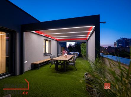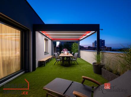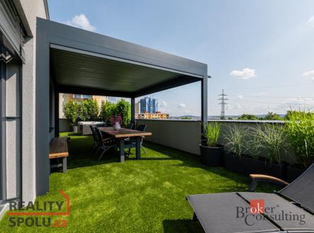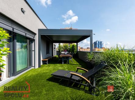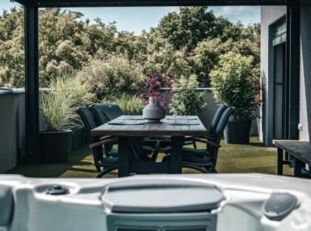 Dámy a pánové, dovolte nám představit jeden z nejluxusnějších a nejstylovějších bytů, které město Plzeň aktuálně nabízí. Tato výjimečná nemovitost se nachází v novém rezidenčním komplexu v ulici Heyrovského, v přímém sousedství Borského parku. Jednotka o dispozici 3+kk ( 78 m² ) s prostornou šatnou je situována v posledním, pátém patře moderního domu a nabízí absolutní klid, soukromí a výjimečný standard bydlení. Největší dominantou je terasa o rozloze úchvatných 80 m², která obepíná celý byt a byla navržena jako soukromá relaxační zóna. Naleznete zde bioklimatickou pergolu, vířivku a vzrostlé stromy se samozavlažovacím systémem, které zajišťují maximální soukromí a navozují atmosféru luxusního apartmánu v přírodě. Každý vstup na terasu je tak malým únikem z města – do zeleně a ticha přilehlého parku. Byt je nabízen kompletně vybavený – stačí přijít s osobními věcmi a můžete začít nový život. Vybavení zahrnuje nábytek na míru z dubového masivu a špičkové spotřebiče značky Miele. O příjemné klima a zároveň záložní vytápění se stará klimatizační systém Siemens. Všechny použité materiály i řešení interiéru byly vybírány s důrazem na estetiku, funkčnost, nadčasovost a především kvalitu. Obklady a dlažby pocházejí od italského výrobce Mirage (série Royal), kuchyňské baterie s dřezem a filtrem na vodu dodala renomovaná značka Hansgrohe, osvětlení je z Itálie – Axolight Muse, pracovní kamenná deska Tachmahad a drobné spotřebiče značky Smeg. Zde opravdu není co vytknout. Samozřejmostí jsou tři garážová parkovací stání přímo pod domem, která jsou součástí prodeje a výrazně zvyšují komfort bydlení. Tento byt je ideální volbou pro ty, kteří hledají naprosté soukromí, špičkový standard a výjimečné prostředí s přímým kontaktem s přírodou – a to vše v rámci města. Pokud hledáte prémiovou nemovitost, neváhejte nás kontaktovat pro více informací či sjednání osobní prohlídky. Těšíme se na vás. Poznámka k ceně: V ceně bytu nejsou zahrnuty zmíněné tři parkovací garážové stání.