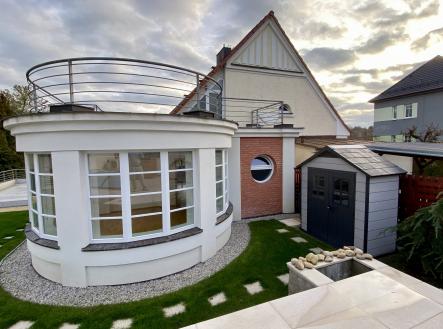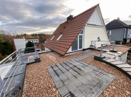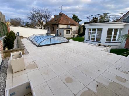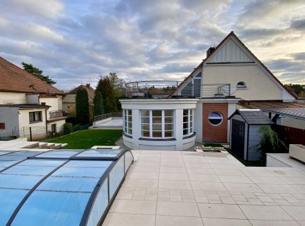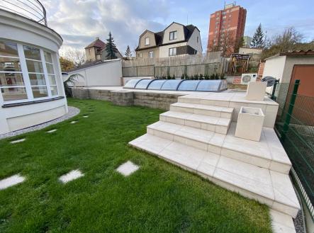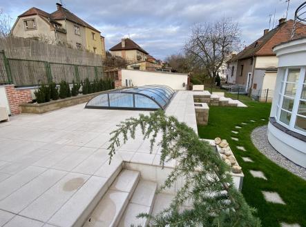 Nabízíme Vám exkluzivně k prodeji rodinný dům ve velice lukrativní a žádané lokalitě, Plzeň - Skvrňany, ul. Slovanské údolí. Jedná se o polovinu rodinného dvojdomu o celkové užitné ploše 135m². Tento v minulosti prošel celkovou rekonstrukcí. Dům je napojen na veškeré inženýrské sítě (elektřina, plyn, městský vodovod a splašková kanalizace). Dispozičně je řešen jako 4+kk o celkové podlahové ploše 100m². V přízemí domu se nachází předsíň se samostatnými vstupy do prostorného obývacího pokoje s kuchyní, atriové ložnice, koupelny s WC a technické místnosti. Po lomeném schodišti se dostaneme do podkroví s dvěma pokoji a se samostatným vstupem na terasu. V suterénu domu je prostorný, vytápěný sklep s oknem, kde je přípojka na pračku a sušičku a je ho možno tedy využít k praní a sušení prádla. Vytápění a ohřev teplé vody zajišťuje kondenzační plynový kotel značky Vaillant s nádrží na 120l TUV. K domu náleží zahrada o celkové rozloze 324m², samostatně stojící garáž s terasou na její střeše. Na zahradě byl v roce 2025 zbudován zapuštěný, zastřešený a vyhřívaný bazén tepelným čerpadlem o rozměrech 6x3x1,5m. Dům se nachází v tiché čtvrti s výbornou dostupností do centra Plzně. V blízkosti najdete veškerou občanskou vybavenost, školky, školy, obchody, sportoviště i přírodu k procházkám. Doprava je zajištěna MHD, možnost nájezdu na D5. DOPORUČUJI OSOBNÍ PROHLÍDKU