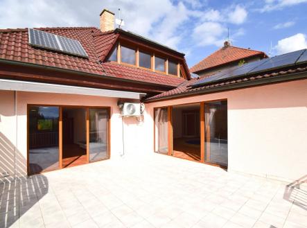 Popis nemovitosti Na první pohled nenápadný, ovšem uvnitř nabízí velkorysý prostor pro pohodlné bydlení s veškerým komfortem, který si umíte představit. Takový je rodinný dům v Plzni – Černicích, v jedinečné lokalitě v sousedství podobných rodinných domů, nedaleko řeky Úhlavy a přitom v dosahu městské dopravy a ruchu velkoměsta. Podívejte se ve fotodokumentaci na video nahrávku a fotografie domu. Informace k domu Dům byl postaven před 25 lety, tedy je v nejlepším věku. Jedná se o kvalitní stavbu, ve své době v nadstandardních parametrech. Kvalitu stavby ovšem oceníme i dnes. Hlavní obytný prostor začíná prostornou vstupní halou, jejímž hlavním prvkem je točité schodiště s kovaným zábradlím. V této části domu se dále nachází šatna, koupelna s WC a pokoj, který sloužil jako pracovna. Obývací část dále pokračuje kuchyňským koutem s plně vybavenou kuchyňskou linkou. Krbová kamna nejen pro dlouhé zimní večery dodávají obývacímu prostoru nádech příjemné domácí atmosféry. Navazující prostor bazénu za prosklenými dveřmi je pak už jen třešinkou na dortu. Z bazénu můžete pohodlně vstoupit na terasu, přičemž zde máte naprosté soukromí. Privátní prostory domu jsou důmyslně ukryty před zvědavými zraky sousedů i kolemjdoucích. V prvním patře domu jsou 3 ložnice, koupelna s vanou a sprchovým koutem a samostatné WC. Z každého pokoje si můžete užít nádherný výhled do okolí. Přízemí domu pak je věnováno výhradně technickému zázemí domu, je zde sklep, garáž pro dvě auta, technická místnost s plynovým kotlem, prostor pro skladování dřeva do krbu, a další prostory, které lze využít dle libosti příštího majitele. Vytápění domu a teplou vodu zajišťuje plynový kotel. Na střeše jsou umístěny solární panely, které vyrábějí energii nejen pro potřeby domu, ale energie je rovněž na základě platné smlouvy vykupována státním operátorem trhu s elektřinou OTE, což ve výsledku znamená, že výnosy z takto vyrobené energie pokryjí náklady domu na spotřebu, ale přináší i menší zisk. Smlouva je platná do roku 2029. Celková podlahová plocha obytných místností tvoří 340m2. Z toho technické zázemí představuje 96m2. Celková plocha zahrady činí 349m2. Pozemek celkem včetně zastavěných ploch a nádvoří tvoří 551m2. Blízké okolí Dům leží v klidné části Plzně ve čtvrti Bručná. Veškerá občanská vybavenost je dostupná trolejbusy MHD, které vás pohodlně dovezou až do centra města. Základní i mateřské školy jsou vzdálené několik minut pěší chůze. Pohodlně se dopravíte i MHD. Nedaleko je nákupní centrum Olympia, poliklinika Slovany, park Homolka, kavárny, restaurace i zařízení sportovního vyžití. Procházky kolem nedaleké řeky Úhlavy jsou samozřejmostí. Pro koupi zajistím kompletní realitní a právní servis a výhodné financování hypotečním úvěrem. Zavolejte mi, nebo napište, domluvíme si prohlídku, nemovitost Vám ráda ukážu.