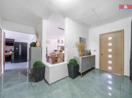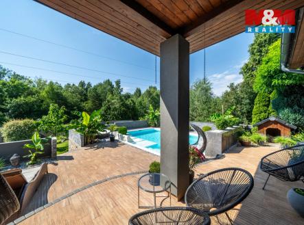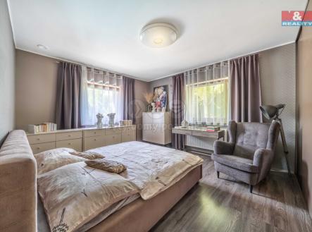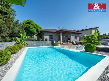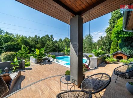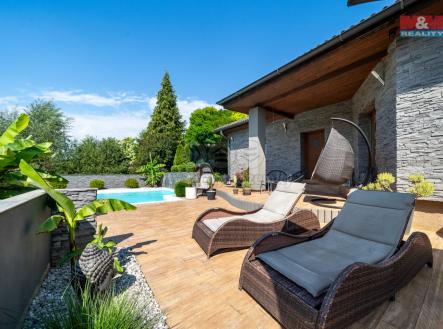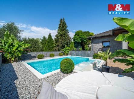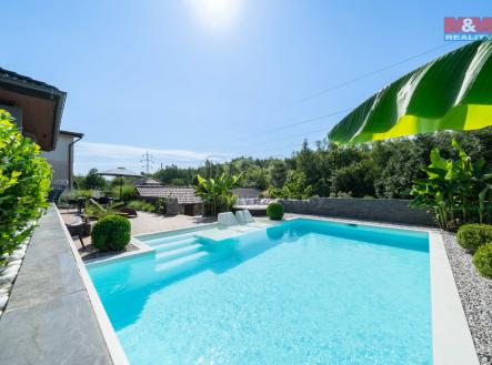Nabízíme k prodeji výjimečný rodinný dům o dispozici 3 kk, který vyniká vysokým standardem provedení a promyšleným řešením pro komfortní bydlení. Nachází se v klidné části, kde máte absolutní klid a soukromí, zároveň však veškerou občanskou vybavenost doslova na dosah. V domě je prostorný obývací pokoj s krbem propojený s kuchyní a jídelní částí, ložnice, pokoj, velká koupelna s vanou a sprchovým koutem, samostatné WC. Přímý vstup z domu na velkou terasu nabízí krásný výhled do okrasné zahrady a okolí, je ideální pro letní posezení či rodinné grilování. Dominantou celé zahrady je nádherný bazén zapuštěný do země, který vám umožní osvěžení v horkých dnech a promění váš domov v soukromou oázu. Na pozemku o celkové výměře 722 m2 jsou 2 garáže, které nabízí dostatek úložného prostoru. Dům je napojen na veřejnou kanalizaci a zdroj vody je z vlastní studny, vytápění elektrokotlem. Přijďte se přesvědčit, že může existovat domov, který spojuje přírodu, prostor a styl.