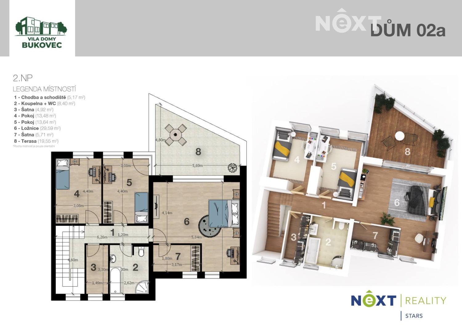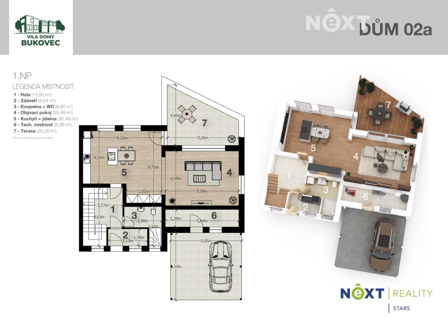 Exkluzivně vám představuji jedinečný projekt výstavby moderních ekologických vila domů. Projekt vzniká v klidné a vyhledávané části Plzně – Bukovec, obklopené zelení a přírodou, a přitom s výbornou dostupností do centra města. Místo, kde se snoubí komfort moderního bydlení s klidem a soukromím. Stavební dokončení projektu je plánováno na jaro 2026. Představovaný dům je postaven, na pozemku o výměře 390m2, se zahradou orientovanou na jižní a východní stranu domu. U domu jsou dvě venkovní parkovací stání. Dispozice domu 41 s celkovou užitou plochou 219m². Jedná se o dům s vlastním pozemkem a vlastním číslem popisným. Při projektování domu se kladl důraz na dokonalé propojují s okolní přírodou a dostatkem přirozeného světel v celém interiéru domu. Zároveň se používají nejlepší materiály s důrazem na nízkou energetickou náročnost. - Zelená střecha, které je garantem dokonalých tepelně izolačních vlastností střechy - Teplené čerpadlo, které je zdrojem teplo vodního vytápění a zajišťuje ohřev vody - Plastová okna s izolačními trojskly - Dokonalé zateplení opláštění domu - Příprava na fotovoltaiku a předokenní žaluzie Nechybí také prvky pro vaše bezpečí - Rozvod pro zabezpečovací zařízení - Dokončené oplocení domu Přízemí domu dominuje velkolepý obývací pokoj se samostatnou kuchyní a tyto místnosti jsou posuvnými portálovými dveřmi důmyslně propojeny s přilehlou zahradou a terasou. V prvním nadzemním podlaží nechybí samozřejmě vstupní hala, šatna, technická místnost a koupelna se sprchovým koutem, umyvadlem, toaletou a prostorem na pračku a sušičku. Do druhého nadzemního podlaží vystoupáte po schodišti, kdy přicházíte do prostorné chodby, ze které je vstup do jednotlivých místností druhého nadzemního podlaží, jako jsou dvě dětské ložnice, šatna koupelna a hlavní rodičovská ložnice s vlastní šatnou či pracovnou, která má výstup na přilehlou terasu, ze které můžete pozorovat úchvatné východy slunce. Bukovec se nachází na východním okraji Plzně a nabízí ideální kombinaci klidného prostředí a výborné dostupnosti. V jeho blízkosti najdete lesy, rybníky, cyklostezky i řeku Berounku, přičemž cesta autem nebo MHD do centra města zabere jen několik minut. Pro rodiny s dětmi představuje tato lokalita skvělé místo k životu – je bezpečná, poskytuje spoustu možností pro aktivní trávení volného času a má přátelskou sousedskou atmosféru. Veškerá občanská vybavenost je na dosah – mateřská i základní škola, obchody, restaurace i další služby jsou vzdálené jen pár minut. Velkým benefitem je také rychlé napojení na dálnici D5, které zajišťuje pohodlnou cestu jak směrem na Prahu, tak do Německa. Městská hromadná doprava vás bez problémů dopraví do všech částí Plzně, ať už za prací, zábavou nebo kulturou. Okolí Bukovce vybízí k aktivnímu životnímu stylu – můžete se věnovat procházkám, běhání, cyklistice nebo vodním sportům na nedaleké Berounce. Pro komunikaci uvádějte evidenční číslo zakázky N113379.