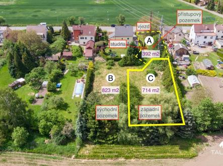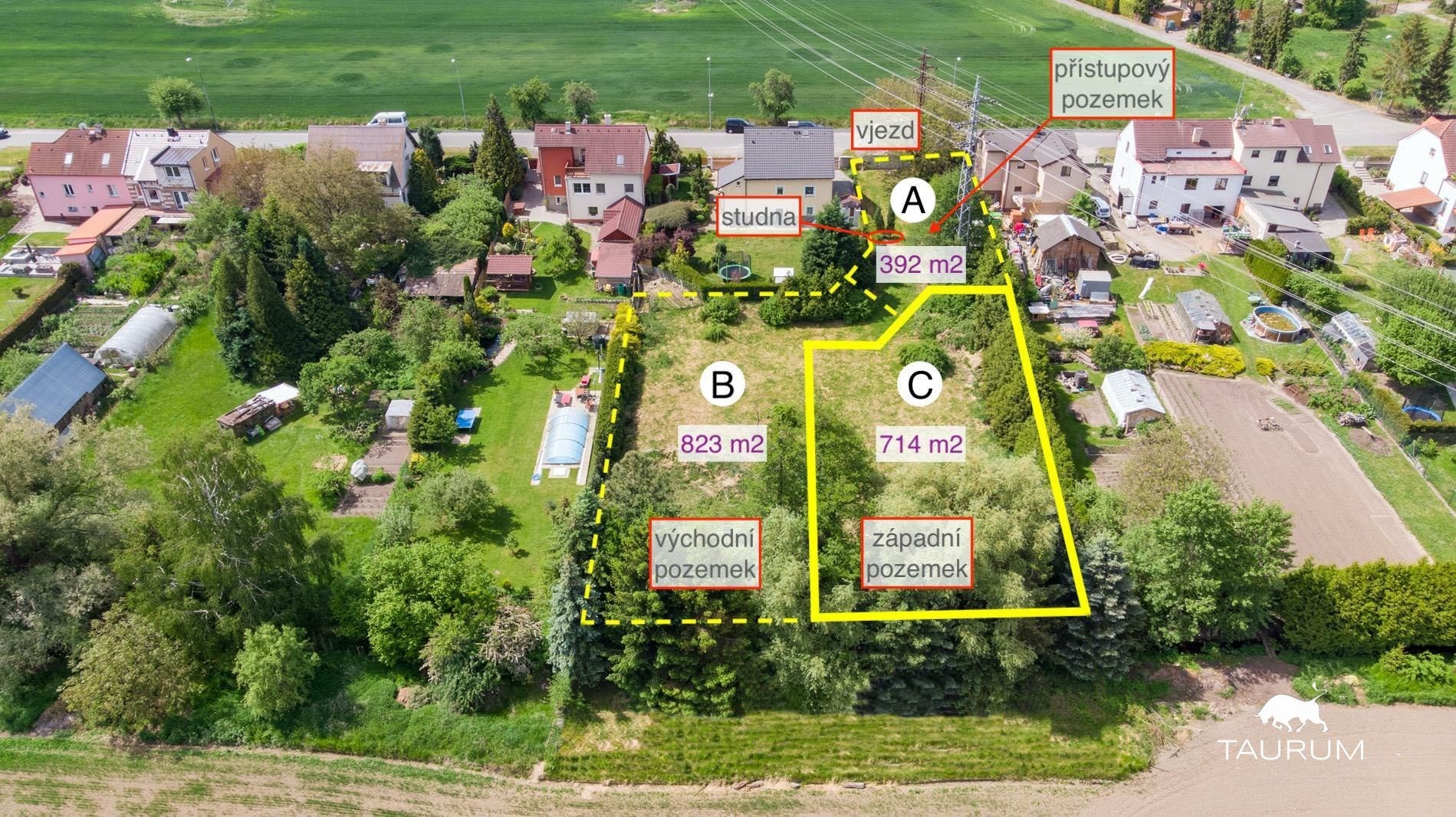 5 minut jízdy autem od centra města, v Plzni Křimicích, je krásný rovinatý pozemek. Ideální místo pro vytvoření nového bydlení na klidném místě s výbornou dostupností na D5. Stavební pozemek "C" o rozloze 714 m2 (plus ideální polovina přístupového pozemku, který má výměru 392 m2) leží v klidné zástavbě mezi ostatními pozemky s rodinnými domy. Pozemek je krytý ze všech stran vzrostlou vegetací (tůje, keře, stromy) a poskytuje dokonalé soukromí. Vzhledem ke tvaru a umístění pozemku na něj není vidět ani z komunikace vedoucí podél zástavby. Na pozemek jsou přivedeny všechny inženýrské sítě: elektřina, kanalizace, voda, plyn. Navíc je na přístupovém pozemku studna. Za pozemkem směrem k poli, je další pozemek, který je možno si pronajmout, nebo jeho část (opět viz vyznačení na obrázku). Majitel pozemku poskytne kupujícímu i projekt na dům, který si nechal již zpracovat. Legenda k přiloženému plánku: pozemek A = přístupový pozemek (součástí ceny je ideální polovina tohoto pozemku), celková výměra 392 m2; pozemek B (východní) = vedlejší pozemek (je také k prodeji na samostatném inzerátu), výměra 823 m2, cena 5.299.000 Kč i s ideální polovinou přístupového pozemku A; pozemek C (západní) = inzerovaný pozemek, výměra 714 m2; Možné je také koupit dohromady pozemky A+B+C (viz samostatný inzerát). Pokud byste pozemek rádi viděli, nebo máte zájem o další informace, kontaktujte mě, prosím. Pro koupi pozemku zajistím kompletní realitní servis a financování hypotečním úvěrem. Jan Štěpánek TAURUM reality