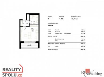 Pronájem bytu, 1+kk, 43,95 m²