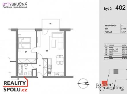 Na pronájem nadstandardně vybavený byt 2+kk s balkonem ve třetím patře moderního bytového domu v Plzni na Bručné. Byt je vybaven kuchyňskou linkou s vestavěnými spotřebiči vč. lednice a myčky nádobí, vestavěnými skříněmi na předsíni i v ložnici a má elektrické předokenní žaluzie. V koupelně je velký sprchový kout a WC. Vytápění zajišťuje moderní plynová kotelna v suterénu domu. Nespornou výhodou je praktická komora (sklep) přímo na patře. Součástí pronájmu je také kryté parkovací stání v suterénu domu. Lokalita Černice - Bručná nabízí místo pro klidné bydlení s vynikající dostupností jak centra města, tak přírody. Zastávka MHD je přímo před domem. Nájemné je 16.900,- Kč, měsíční poplatek za energie činí 3300,- Kč Vratná kauce je ve výši 20.200,- Kč. Provize RK je 1 nájemné + DPH! Byt je volný od 1.4.2026. Majitel si vyhrazuje právo na výběr nájemníka.