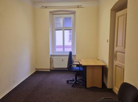 Ve výhradním zastoupení Vám nabízíme pronájem velice pěkného komerčního prostoru o celkové ploše cca 37m2, který se nachází v 1.patře cihlového domu v Koterovské ulici. Vstup je přímo z ulice. Skládá se ze dvou místností (15 a 22 m2). Vstup do kanceláří je z chodby, na které se nachází toaleta pouze pro tyto prostory. V první místnosti v prostoru pro kuchyňku je umyvadlo, lednička a mikrovlnná trouba. Prostory jsou vybavené nábytkem, dále je zde klimatizace. Využití prostor je vhodné ideálně pro kancelářskou činnost. Vytápění je dálkové, zálohové platby jsou součástí služeb. Ohřev vody je pomocí bojleru. Energie, svoz odpadu a internet si nájemce zajistí s dodavatelem. V domě je zavedený CETIN. K dispozici ihned. Třída energetické náročnosti PENB - G. Více informací vám ochotně poskytne realitní makléř.