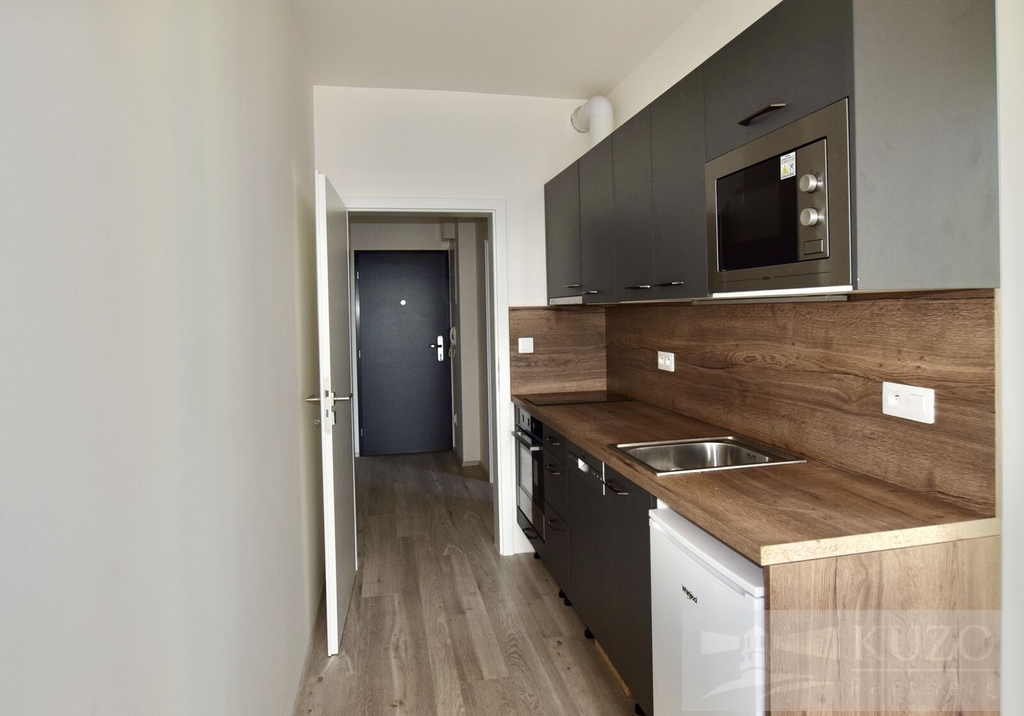 Nabízíme k pronájmu nový světlý byt 1+kk s obytnou plochou 32 m2 a lodžií 2,34 m2. Byt se nachází v 5. NP domu v Plzni v Goldscheiderově ulici. V bytě se nachází pokoj s kuchyňským koutem (myčka, lednice, mikrovlnná trouba, dvouvařič, trouba) a koupelna s WC. K dispozici je také sklep (2,59 m2) a zakladačové parkovací stání. V docházkové vzdálenosti Area Bory, nákupní centrum Borská pole, ZŠ, MŠ, lékař i veřejná doprava. Měsíční nájem činí 13.000-Kč + 2.014,-Kč zálohy na služby. Elektřina bude převedena na nájemníka. Vratná kauce činí 26.000,-Kč. Poplatek RK je ve výši jednoho měsíčního nájmu + DPH 21 %. Doporučujeme osobní prohlídku. Volný ihned…