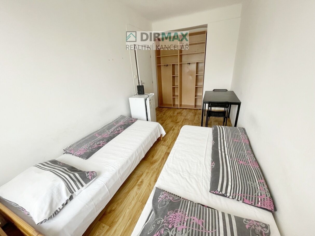 Ve výhradním zastoupení Vám nabízíme pronájem studentského pokoje v bytě (buňce), kdy při vstupu je menší předsíně, ze které se vstupuje do dvou místností samostatně a vše je neprůchozí. Každý pokoj je vybavený dvěma lůžky, skříněmi, nočními stolky, jídelním stolem se židlemi. Maximální počet osob v rámci jednoho bytu/buňky - 4. V každém pokoji je menší lednička s mrazáčkem. Vlastní sociální zařízení. Koupelna je od toalety oddělená, samostatný vstup. Jádro je zděné. V koupelně je sprchový kout a další sanitární keramika. Vše je vzájemně neprůchozí. Kuchyň je společná. Velkou výhodou je, že voda i topení je zajištěno dálkově, tedy centrálně. Je zde i kompletní připojení k internetu pro každou buňku samostatně. Cena měsíčního nájmu na osobu je 4.600,-Kč, kdy v ceně jsou veškeré služby i energie. V částce je voda, topení, osv. spol. prostor, odvoz odpadu, popelnice, vysokorychlostní internet, úklid i pravidelné doplňování toaletních potřeb vč. lůžkovin. Platba je každý měsíc stále stejná a paušální. Těchto bytových buněk je tady několik. Sociální zařízení je součástí každé buňky! Nabídka je pouze pro studenty a studentky! Ideální také pro studentské páry, vše je na domluvě. Ideální pro jednotlivce (je jich zde bydlících většina), pár, skupinku přátel, nastupujících na ZČU v Plzni nebo jakoukoliv jinou fakultu vyšší odbornou nebo jazykovou školu. Zejména výborné také pro jednotlivce, kdy u jednotlivců bude citlivý výběr ohledně dalšího nájemce na lůžko. Dáváme k sobě studenty nejlépe ze stejného ročníku, někdy i fakulty. Jedná se o projekt v rámci Plzně a mimo kolejního ubytování. Budova je se stálou službou vrátnice bez jakéhokoliv vysvětlování příchodu v kteroukoliv denní nebo noční hodinu. Všechny byty/buňky se nacházejí v Zahradní ulici v Plzni na Slovanech. Výhodou je dlouhodobost a hlavně vše je vč. služeb a energií vč. úklidů. Délka pronájmu je na domluvě. Volné a k využívání je od září, tedy od počátku nového akademického roku 2025/2026. Termíny prohlídek i nastěhování jsou na domluvě. Veškerá občanská vybavenost je v bezprostřední blízkosti vč. obchodů s nejrůznějším zaměřením, Billa, pekárna, lékárna atd. Vzdálenost na tramvaj č. 1 je 2 minuty chůze a v centru je tramvaj za cca 8 minut. Blízko je několik parků vč. parku Homolka. Provize RK je 4.600,-Kč vč. DPH na osobu. Bez kauce! Štítek energetické náročnosti k dispozici, PENB - C. Ideální přijít a bydlet, výborné pro nenáročné zájemce o bydlení za velice dobrou cenu bez kolejního řádu. Po rozsáhlé vnitřní rekonstrukci a úpravách. Tento pronájem je pouze pro osoby starší 18 let! Pokud mladší, musí se předem domluvit ohledně možnosti tohoto pronájmu. Vhodné i pro zahraniční studenty a studentky, jsou o patro výše. Již máme ubytováno větší množství studentů a studentek ze všech fakult ZČU vč. LFUK. Na pokojích možno mít vlastní spotřebiče, vybavení, mimo vařiče. Velká variabilita a celkově příjemné bydlení. Osobní a velice vstřícné jednání! Vřele doporučuji!