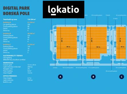 BEZ PROVIZE Nabízíme k pronájmu prostory v moderním průmyslovém parku budovaném na Borských polích v Plzni. Jedná se jedny z nejmodernějších industriálních prostor v ČR plně uzpůsobené pro Průmysl 4.0. Prostory mohou být využity pro skladování, výrobu či výzkumné nebo prodejní účely. DOSTUPNÁ HALA ◉ hala o velikosti: 24 265 m2 DOSTUPNOST ◉ formou výstavby do 9-12 měsíců po podpisu nájemní smlouvy SPECIFIKACE ◉ světlá výška 13,40 metru ◉ nosnost podlah 5 t/m2 ◉ některé jednotky nabízí možnost cross-dockingu ◉ modul sloupů 24 x 12 m ◉ dostatečné manipulační plochy před budovou ◉ stovky parkovacích míst ◉ garance minimálně jedné nakládací rampy na 800 m2 skladu ◉ sprinklerový systém, EPS, EZP ◉ LED osvětlení ◉ infrazářiče nebo sahary ◉ přístup 24/7 ◉ ekologický certifikát BREEAM Excelent LOKALITA ◉ industriální zóna Borská pole se snadným přístupem na dálniční tah D5 ◉ pouze 50 minut jízdy od Německých hranic ◉ dostupné MHD CENA Cena závisí na délce smlouvy a typu provozu. Pro konkrétní nabídku nás neváhejte kontaktovat.