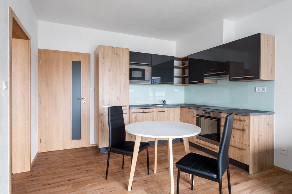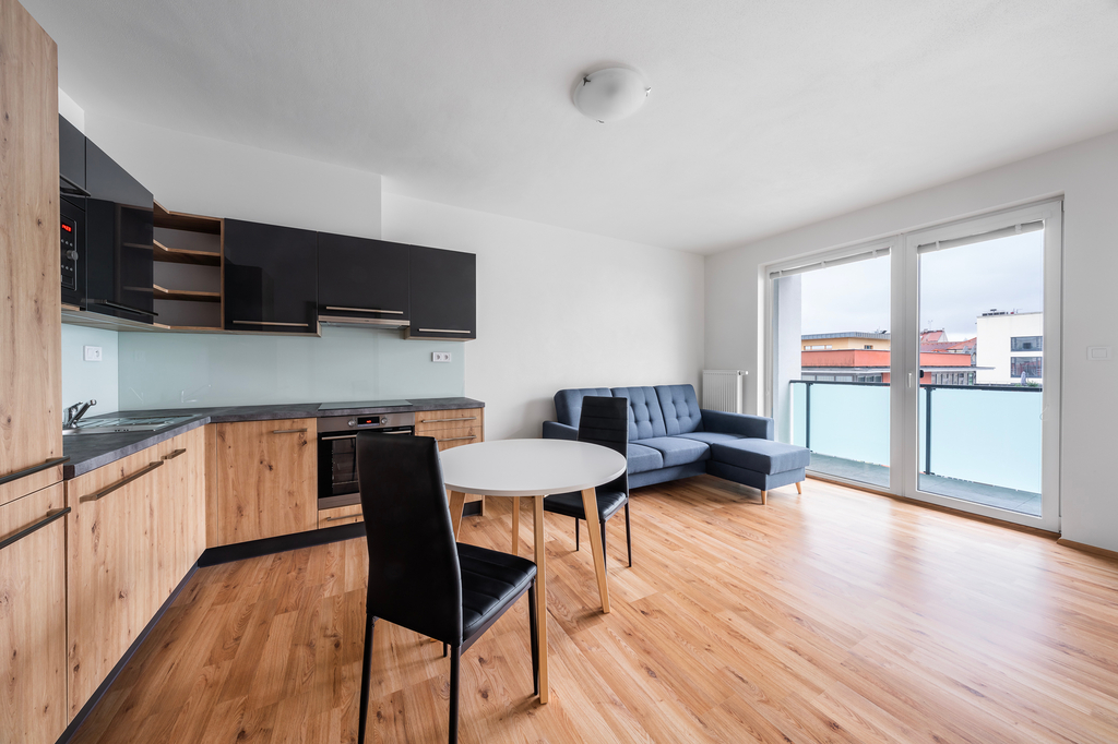 K dlouhodobému pronájmu nabízíme převážně zařízený byt 2+kk s terasou a garážovým parkovacím stáním v širším centru Plzně na Jižním Předměstí, ulice Poděbradova. Bytová jednotka je umístěna v 6. nadzemním podlaží (z celkových 8) energeticky velmi úsporné novostavby (třída B). Dispozice bytu zahrnuje obývací pokoj s kuchyňským koutem, ložnici, prostornou předsíň, koupelnu a samostatnou toaletu. Terasa přístupná z obývacího pokoje se rozpíná po celé šířce bytu. Byt je vybaven moderní kuchyňskou linkou s vestavnou elektrickou troubou, indukční varnou deskou, digestoří, myčkou nádobí, mikrovlnnou troubou, lednicí a mrazákem. Součástí vybavení je také rozkládací sedačka, jídelní stůl se židlemi, postel s rošty (bez matrací), šatní skříň, koupelnový nábytek a kompletní osvětlení. Všechna okna mají vnitřní žaluzie. Vytápění je centrální (Plzeňská teplárenská), totéž dodávka teplé vody. Spotřeba energií je měřena samostatně pro každý byt. Středová poloha bytu v zatepleném domě přispívá nejen k vyššímu tepelnému komfortu, zvláště v zimních měsících, ale také k úspoře nákladů na jeho vytápění. Pro TV přenos je k dispozici společná anténa. Připojení k internetu s rychlostí až 2 Gb/s zajišťují poskytovatelé jako O2, Vodafone, T-Mobile a další. Cenové podmínky pronájmu: • Nájemné 17.900 Kč/měsíc • Zúčtovatelné zálohy na energie a služby včetně elektřiny 3.500 Kč/1 osoba/měsíc 4.000 Kč/2 osoby/měsíc • Jistota (vratná kauce) 35.000 Kč • Provize RK 21.700 Kč Pro bližší informace či domluvení prohlídky volejte na uvedený mobilní telefon. Pro zjištění rozměrů místností a objektů v prostoru využijte možnost měření ve virtuální prohlídce pomocí ikony pravítka v levém dolním rohu.
