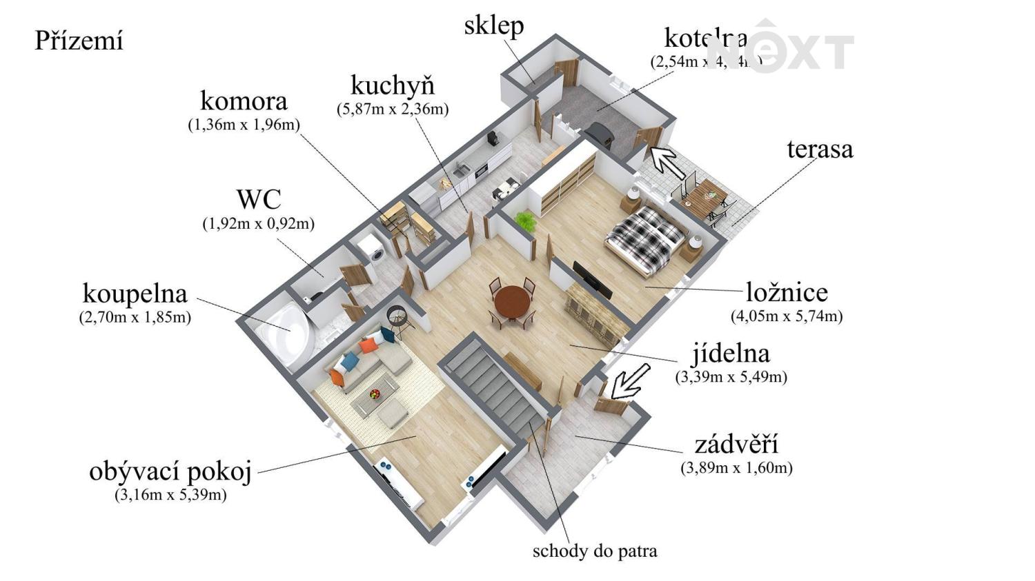 Rodinný dům s velkorysým pozemkem a výhledem – Konětopy u Pnětluk Hledáte klid, soukromí a prostor pro vlastní realizaci? Nabízíme k prodeji samostatně stojící rodinný dům v malebné obci Konětopy, který kombinuje kouzlo venkova s potenciálem moderního bydlení. Hlavní přednosti nemovitosti: Velkorysý pozemek: Celková výměra 1 232 m² v mírném svahu zajišťuje dostatek soukromí a nádherný výhled na okolní lesy a krajinu. Nová střecha: Dům prošel zásadní investicí – má zcela novou sedlovou střechu s pálenou taškou, což výrazně snižuje budoucí náklady na rekonstrukci. Moderní vytápění: O teplo se stará automatický kotel na tuhá paliva, který zajišťuje komfortní a úsporný provoz. Dispozice a potenciál: Světlý interiér s vysokými stropy nabízí prostorný obývací pokoj propojený s jídelnou a možnost vybudování dalších obytných místností v podkroví. Popis interiéru a exteriéru: Dům je v původním, ale velmi udržovaném stavu, což umožňuje okamžité užívání s postupnou modernizací dle vašich představ. K domu přiléhají hospodářské budovy, které mohou sloužit jako dílna, sklad nebo zázemí pro chov zvířat. Na zahradě se vzrostlými stromy se nachází nadzemní bazén a dostatek místa pro terasu či zahradničení. Lokalita: Konětopy jsou ideálním místem pro ty, kteří milují přírodu, turistiku a klid. Obec je obklopena lesy, přitom s dobrou dostupností do okolních měst (Louny, Žatec). Tato nemovitost je ideální jako: 1. Trvalé rodinné bydlení pro ty, kteří chtějí žít v souladu s přírodou. 2. Prostorná chalupa pro víkendové úniky z města. 3. Investiční příležitost k rekonstrukci a následnému prodeji. Technické parametry: Plocha pozemku: 1 232 m² Inženýrské sítě: Elektřina, voda (přípojka na obecní vodovod), kanalizace veřejná Stav: Před rekonstrukcí (nová střecha, funkční topení) Přijeďte se přesvědčit o potenciálu tohoto místa osobně. Těším se na vás na prohlídce! V inzerátu jsou použity fotografie vizualizace pro představu vašeho budoucího domova. Pro komunikaci uvádějte evidenční číslo zakázky N116832.
