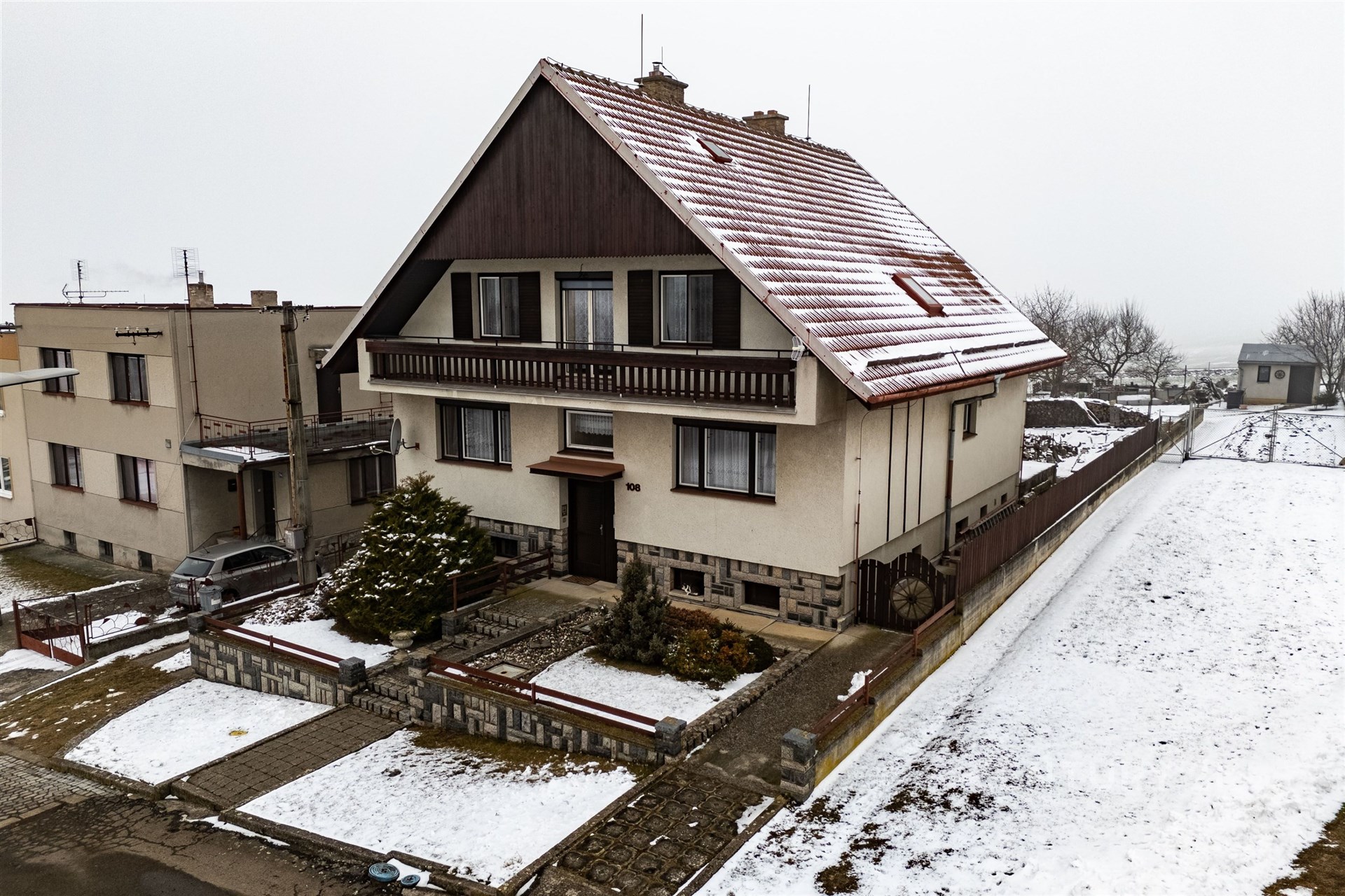 Hledáte dům, který byl postaven poctivě, s rozumem a s dostatkem prostoru pro skutečný rodinný život? V obci Počenice nabízím k prodeji samostatně stojící rodinný dům situovaný na velmi klidném okraji obce. Jen minutu chůze od domu najdete dětské hřiště a okolí poskytuje příjemné bydlení v kontaktu s přírodou. Dům byl budován v 80. letech, velmi promyšleně a na tehdejší dobu i nadstandardně. Dostavěn byl v roce 1990 a do dnešního dne je opravdu velmi dobře udržován. Díky tomu nabízí pevnou konstrukci, velkorysé místnosti a výborné zázemí, které ocení zejména větší rodina. Dispozice a vnitřní uspořádání: Aktuálně je dům řešen jako 5+1, přičemž nabízí možnost dalšího rozšíření. Přízemí a patro mají dohromady přibližně 204 m², dalších 110 m² nabízí suterén. Přízemí: ložnice, pokoj, obývací pokoj navazující na jídelnu, kuchyně, koupelna s vanou a samostatné WC. Patro: dva hotové pokoje, koupelna s vanou, samostatné WC prostorná chodba a dvě místnosti, které nebyly nikdy dokončeny (původně plánované jako kuchyně a obývací část). Snadno zde může vzniknout byt pro další generaci, nebo pracovna, tělocvična, herna... Fantazii se meze nekladou. Technické informace: vytápění plynovým kotlem možnost přitápění krbovými kamny v obývacím pokoji obecní vodovod + vrtaná studna na zahradě (užitková voda) napojení na obecní kanalizaci V suterénu domu najdete opravdu bohaté zázemí: kotelnu, sklad, prádelnu, spižírnu i technickou místnost. Praktickým bonusem je také garáž a dílna s montážní jámou. Pozemek a další stavby: Velkým benefitem je pozemek o výměře více než 1 800 m². Kromě hlavního domu zde stojí hospodářská budova a dva zahradní domky. Nabízí se tak dostatek prostoru pro zahradu, chov, dílnu i odpočinek. Pro koho je dům ideální? ✔ pro velkou rodinu ✔ pro vícegenerační bydlení ✔ pro ty, kteří chtějí kombinaci klidného místa a velkého prostoru ✔ pro každého, kdo ocení poctivou stavbu s možností úprav podle vlastních představ Pokud hledáte místo, kde může vaše rodina růst a kde si nový domov přizpůsobíte přesně podle sebe, ráda vám tento dům osobně představím.