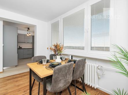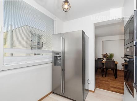 S tímhle bytem vám nebude ani trošku vadit, že za okny sněží. Strávit v něm celý den není za trest, ale za odměnu. Jsme v Poděbradech, v bytě 3+1 o užitné ploše přes 86 metrů, s příslušenstvím dokonce 94. Po kompletní moderní rekonstrukci, v jedenáctém - předposledním - patře zatepleného panelového domu. V praxi to znamená: spousta světla, výhledy, ticho – a žádné starosti. Hned za vstupem vás přivítá velkorysá hala. Ne stísněný tunel, ale prostor, kde se dá žít – převléct děti, složit tašky, postavit botník i lavici. Praktická nika na pračku a sušičku drží technické věci mimo obytnou část. A teď do ložnice, kde rána začínají a večery končí. Na více než 22 metrech se sem vejde velká postel, skříň i pracovní stůl a pořád tu zůstane místo, aby místnost dýchala. Velká okna, vstup na lodžii. Místo, kde si člověk neukopne palec o postel a klidně si zacvičí jógu. Přesuňme se rovnou do kuchyně. Ne malá, ne obří – tak akorát. Čisté linie, úložné prostory, vestavné spotřebiče AEG, indukce, mikrovlnka, trouba, a k tomu americká lednice s výrobníkem ledu. Velké okno poskytne světlo pro všechna vaše kulinářská kouzla – a když kouzlo selže, snadno vyvětráte. Obývací pokoj - velký světlý prostor, kam se vejde sedačka, konferenční stolek, televize i pracovní nebo herní koutek. Podlaha s ořechovým dekorem a stěna z luxfer dodávají místnosti útulnost a moderní čistotu. Místnost, která neurazí žádný vkus a snadno se doladí do vašeho stylu. Součástí obýváku je jídelní kout u oken – světlo, prostor na velký stůl a místo, kde se sedí dobře ráno i večer. A hned vedle vstup na druhou lodžii. Další pokoj může být čímkoliv – dětský, studentský, pracovna nebo místnost pro virtuální realitu. Tak akorát velký, uprostřed bytu. Z haly se dostanete do místnosti, která spoustě lidí splní velký sen – šatnu. Skutečnou walk-in šatnu se systémem polic, zásuvek a věšáků, kam schováte sezónní oblečení, kufry i sportovní vybavení, a byt přesto působí uklizeně. Domácí wellness, nebo, chcete-li, koupelna. Dominantní červenobílé obklady, skleněná stěna z luxfer, skříňka s umyvadlem a hlavně masážní vana s podsvícenou vodou. Stačí napustit, zapálit svíčku a máte večerní spa. Pokud není čas na dlouhý relax, je tu velký sprchový kout a žebříkový radiátor. Samostatné WC je samozřejmostí. Byt má dvě lodžie – západní z obýváku, východní z ložnice. Ranní káva nad Poděbrady, večerní sklenka při západu slunce. Z 11. patra je vidět pěkně daleko. Dům je zateplený, má dva výtahy, dva vchody, zadní bez bariér díky rampě. Udržovaný vstup, kolem domu zeleň, parkování v okolí relativně snadné. Sportoviště, školy, nákupy, náměstí i vlak máte na dohled. A když chcete vyměnit panel za kolonádu, lázeňský park a řeku, jste tam za pár minut. Večer se vrátíte nahoru, zavřete byt – a klid nad městem je zase váš. Jestli hledáte hotový, funkční rodinný byt 3+1 bez dalších investic, kde všechno dává smysl a dobře se žije, může to být váš nový domov. Vůbec na nic nečekejte, vemte telefon a zavolejte.