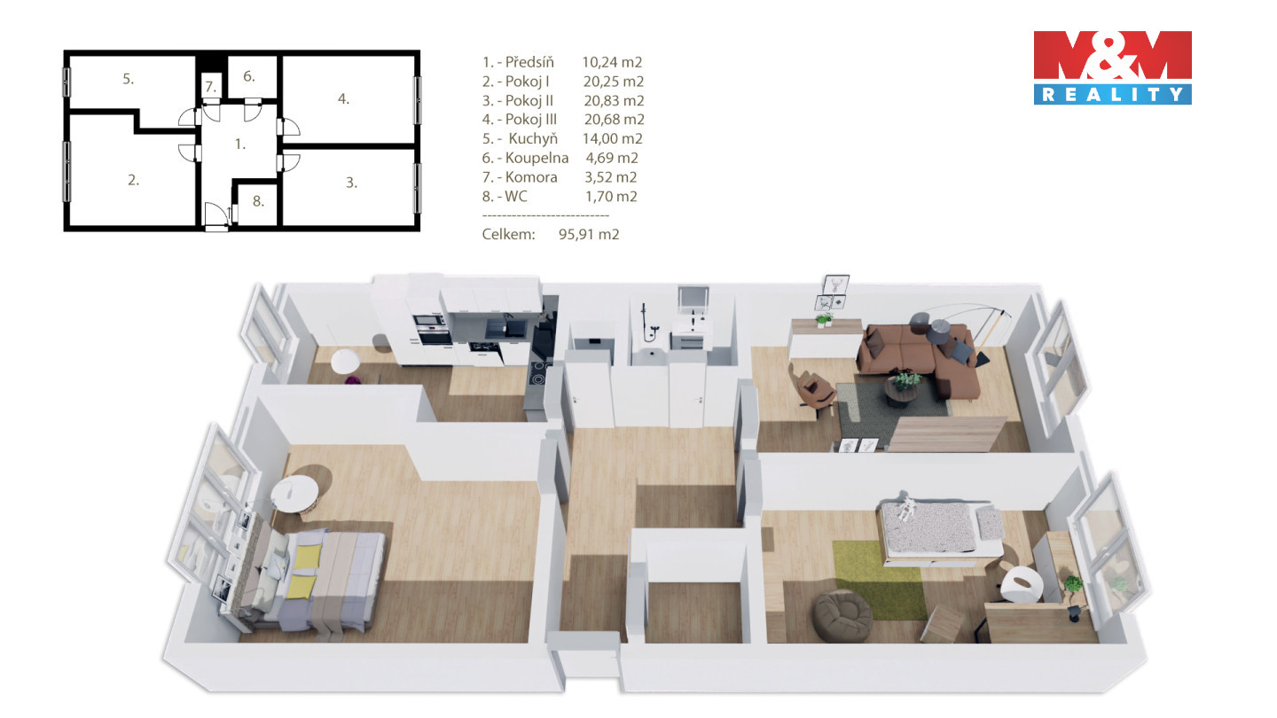 Prodej bytu, 3+1, 95 m²