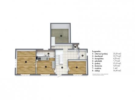 Dovoluji si Vám nabídnout prostorný rodinný dům se dvěma bytovými jednotkami, který se nachází v malebné obci Podhorní Újezd a Vojice v okrese Jičín v Královehradeckém kraji. Dům je usazený na pozemku o velikosti 1 115 m2. Cihlový rodinný dům se prodává částečně vybavený a jeho celková podlahová plocha činí 156 m2 s dispozicemi 3+1 v přízemí a 2+1 v podkroví. V domě jsou dvě kuchyně, avšak pouze jedna koupelna a jedna toaleta. V přízemí se nachází vstupní chodba (7,7 m2) s dominantním schodištěm, kuchyně s jídelnou (12,7 m2) průchozí do obývacího pokoje (23,2 m2), koupelna (4,2 m2), ložnice (13,1 m2), samostatná toaleta, spíž (3,05 m2) a veliký sklep s klenutými stropy (16,4 m2). Podkroví nabízí ložnici (8,76 m2), moderní kuchyni s jídelnou (13,39 m2), pokoj s šatnou (33 m2) a prostorný půdní prostor. V domě jsou nová plastová okna a podkroví je zateplené foukaným polystyrenem. Do domu je přivedena elektřina a plyn, je napojený na vodovodní obecní řád a odpad je připojený na obecní kanalizaci. V přídomku a garáži je přivedena elektřina. Hlavním zdrojem vytápění je plynový kotel, jako druhý zdroj je možné využívat kamna na tuhá paliva. Dominantou domu je krásná udržovaná oplocená zahrada na níž stojí dřevěná kůlna a cihlová stavba (přídomek) ve velmi dobrém stavu s prostory bývalých chlévů a oddělená garáž na jeden OA. Na zahradě v zemi je nádrž o velikosti 1000l na dešťovou vodu. Vojice jsou skvělým místem pro klidný rodinný život, nachází se 16 km od města Jičín a 14 km od Lázní Bělohrad. Do obce jezdí pravidelná autobusová a vlaková doprava. Těším se na běžných prohlídkách, ale nabízím také viedeoprohlídky v reálném čase přes WhatsApp, Face Time, Messenger, Skype aj.
