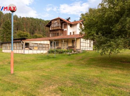 Ve výhradním zastoupení nabízíme k prodeji rekreační areál v Podhradí nad Dyjí v Jihomoravském kraji. Areál se nachází v tradiční rekreační oblasti Vranovské přehrady, nedaleko splavu řeky Dyje a pár minut chůze od zříceniny Frejštějn. V areálu jsou dvě hlavní budovy s ubytováním (budova s restaurací a vilka), dvě sezónní chaty a budova zázemí. Celková ubytovací kapacita je 51 lůžek. V budově s restaurací a apartmány je k dispozici 5 pokojů s vlastním soc. zařízením, (ubytovací kapacita 21 osob), v přízemí se nachází restaurace s gastro kuchyní a zázemím, místnost s výčepem (kapacita 16 osob), malý sál (30 osob) a velký sál (60-70 osob), před vchodem do restaurace je venkovní zastřešená zahrádka (30 osob). Ve vilce je k dispozici 6 pokojů o celkové kapacitě 16 osob, sociální zařízení je společné na každém patře. Na vilku navazuje přístavba dvou sezónních chatek o celkové kapacitě 16 osob ve 4 pokojích se společným soc. zařízením. Chatky mají společný společenský prostor. V mírně svažité, udržované zahradě, která má přes 5900 m2 se nachází alej vzrostlých bříz a ovocné dřeviny, dále zpevněné volejablové hřiště, zahradní krb a altán. Celý areál je oplocený a vede jím jednosměrná zpevněná komunikace. Jako zdroj vody slouží 3 vlastní studny, areál je napojen na kanalizaci. Vytápění pro obě hlavní budovy zajišťuje kotel na tuhá paliva v suterénu vilky. Na budovách byly provedeny částečné renovace (výměna oken v budově s restaurací, nová instalace elektřiny v gastro kuchyni), nicméně jejich současný stav vyžaduje další investice. Pro areál je vypracován projekt na rekonstrukci, který počítá se zbouráním zastaralých přístaveb a rozšířením o 10 nově vybudovaných chatek a budovu s wellness. Na tento projekt je vydáno platné stavební povolení. Nemovitost je bez právních vad a celková plocha nabízených pozemků činí 7022 m2. Tento jedinečný areál je možné přizpůsobit pro rozličné podnikatelské záměry jako turistický kemp, sezónní ubytování v apartmánech, pronájmy pro firemní a teambuildingové akce, sportovní soustředění, rodinné oslavy, svatby, nebo pro vybudování místa se zcela novým zaměřením jako například sportoviště, wellness areál apod. Možné je také užívání pro soukromou rodinnou rekreaci. Obec Podhradí nad Dyjí je tradiční rekreační středisko obklopené krásnou přírodou, a jeho poloha v blízkosti Vranovské přehrady nabízí spoustu možností k pěší turistice, rybaření a cykloturistice (cyklotrasa Vranov n Dyjí-Slavonice). Přímo kolem Podhradí vede trasa stezky Českem a v okolí je řada výletních cílů jako zámek Uherčice, zřícenina hradu Cornštejn, hrad Bítov, zámek Vranov nad Dyjí, areál Vranovská pláž, také Národní park Podyjí a na rakouské straně National park Thayatal. Pro informace o ceně a domluvení prohlídky mne kontaktujte. Pozn: v souvislosti s povodňovou situací v r. 2024 doplňujeme informaci, že areál není vodou z řeky Dyje poškozen ani ohrožen, jeho poloha a vzdálenost od řeky je dostatečná a k záplavám zde nedochází.