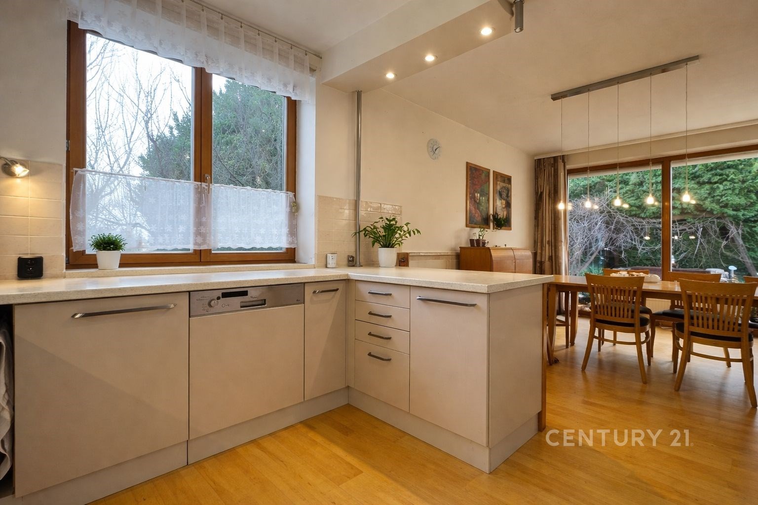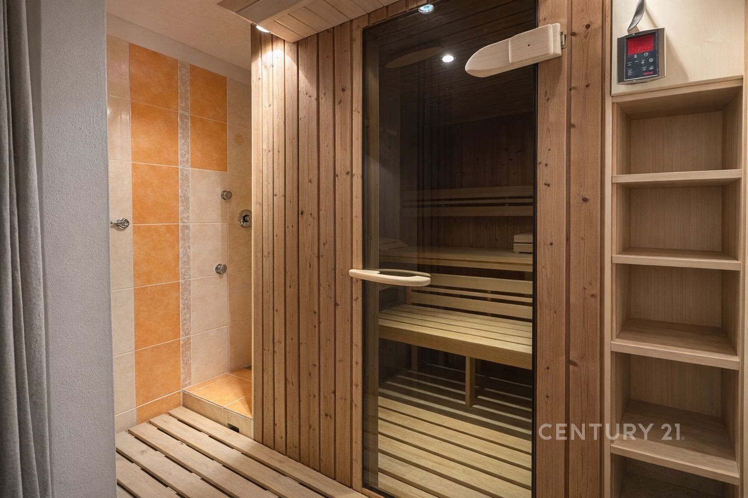 Nabízíme k prodeji nádhernou rodinnou rezidenci v malebné obci Podolí, jen kousek od Brna. Dům s parcelním číslem 1239/459 kombinuje moderní vymoženosti s komfortním bydlením a nachází se v klidné oblasti s výhledem na okolní krajinu. Díky své poloze a směrování na východ, jih a západ poskytuje světlé a slunné prostory během celého dne. Tento dvoupodlažní dům byl postaven v roce 2003 a rozkládá se na pozemku o celkové výměře 804 m², z čehož 657 m² tvoří krásně udržovaná zahrada s bazénem, ideální pro odpočinek a rodinné aktivity. Užitková plocha domu je 325 m², zahrnujíc vysoké stropy s výškou 2,74 metru, což dodává interiéru vzdušnost a prostornost. Dispozice 5+kk nabízí pohodlí a praktičnost – v domě najdete prostornou obývací místnost (46,8 m²,) spojenou s plně vybavenou a nadstandartně řešenou kuchyní (8,4 m²,). Z obývacího pokoje je přímý vstup na terasu s markýzou, ze které je výhled a vstup na zahradu a bazén. V patře jsou tři ložnice o rozměrech (19,2 m²,, 25,1 m², a 39,6 m²,). V suterénu domu se nachází prostorný sklep s dílnou, technickou místností (kotel Buderus s akumulační nádrží) a saunou o celkové výměře podsklepení 77 m², který poskytuje dostatek úložného prostoru. Garáž (39,2 m²), pro dva vozy a další dvě parkovací stání na pozemku přináší velký komfort pro rodiny s více vozidly. Dům je připojen na veřejnou kanalizaci a vodovod, je zde i připojení na plyn a kabelový internet, což zajistí vysoký komfort bydlení. Energetická náročnost budovy bude doložena Lokalita Podolí u Brna je vyhledávaná pro svou klidnou atmosféru, ale zároveň skvělou dostupnost do centra města, což ocení zejména rodiny s dětmi. V obci se nachází mateřská a základní škola, lékař, pošta a další občanská vybavenost. Blízkost Jihomoravského kraje a města Brno nabízí bohaté možnosti pro volnočasové aktivity a kulturu. Pro více informací nebo domluvení prohlídky kontaktujte zprostředkovatele Petra Vyskočila.