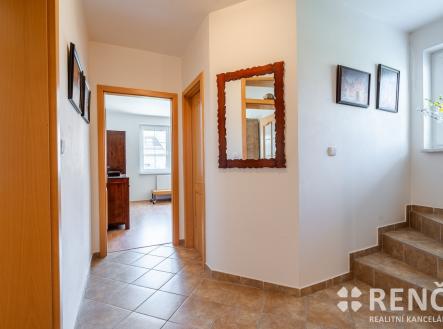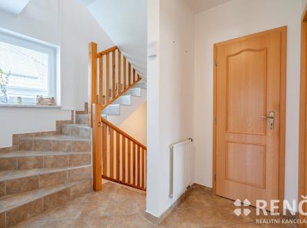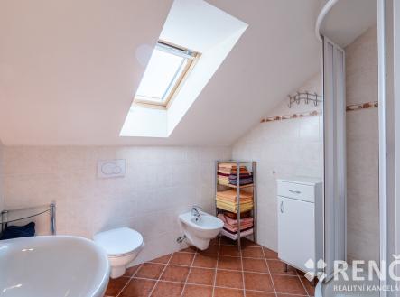 K prodeji nabízíme samostatně stojící, třípodlažní rodinný dům s garáží a mírně svažitou zahradou. Prostorný rodinný dům má dvě obytná podlaží a suterén s technickými místnostmi. Dům má čtyři samostatné pokoje, tři koupelny, obývací pokoj s kuchyňským koutem, terasu orientovanou do ulice, balkón v podkroví, v suterénu dílnu, sklad a garáž. Součástí vybavení je kuchyňská linka včetně spotřebičů, zařizovací předměty v koupelnách atp. Pozemek okolo domu je travnatý, v zahradě domu je umístěna zděná stavba kůlny, u domu je rovněž základ terasy. Zahrada je mírně svažitá, z části osázená dřevinami. Na pozemek je přístup z ulice i ze zahrady zadní bránou. Zděný rodinný dům se sedlovou střechou byl postaven, kolaudován a užíván od roku 2005, je ve velmi dobrém stavu, je možné jej ihned obývat. Dispozice domu: Vstupní přízemí (I.NP) o celkové ploše 72 m2: schodiště a vstupní předsíň 6 m2, dílna 25 m2, sklad 16 m2, sklad 2,4 m2, koupelna 4 m2, WC 1 m2, garáž 17 m2 Obytné patro domu (II.NP) o celkové ploše 72 m2: obývací pokoj 34 m2, kuchyňský kout 7 m2, pokoj 11 m2, koupelna 3,8 m2, WC 1,2 m2, schodiště a chodba 10 m2, venkovní terasa přístupná z OP. Obytné podkroví domu (III.NP) o celkové ploše 72 m2: ložnice 15 m2, ložnice s balkonem 14 m2, ložnice s balkonem 23 m2, koupelna včetně WC 7 m2, komora 1,3 m2, schodiště a chodba 11 m2, balkon. Výměry: Celková vnitřní užitná plocha domu (plocha všech místností): 216 m2 m². Pozemek celkem: 545 m², z toho zastavěná plocha 95 m² a zahrada 450 m². Konstrukce, vybavení a technologie: Svislé stavební konstrukce jsou zděné – tvarovky Ytong, na obvodové konstrukci je rovněž zateplovací systém tl. 7 cm, stropy z litého betonu, konstrukce krovu dřevěná, izolace střechy minerální vatou, krytina keramická, vše z roku 2005. Topení v domě je ústřední plynové, plynový kotel & zásobník na teplou vodu. Na domě jsou umístěny rovněž solární panely pro výrobu el. energie spotřebovávané v domě. Technologie i stavební prvky byly instalovány v době výstavby a kolaudace, tedy v roce 2005, stáří stavby 20 let. Veškerá technická dokumentace je k dispozici v RK. Podlahy plovoucí a keramické, schodiště betonové s keramickou dlažbou, vnitřní zárubně obložkové a dveřní křídla dřevěné dýhované, okna a venkovní dveře plastová včetně žaluzií, vrata do garáže v suterénu plechová výklopná, střešní okna Velux dřevěná, součástí jsou veškerá stropní svítidla, kuchyňská linka včetně kuchyňských spotřebičů (el. trouba, myčka, varná deska, odsavač par, mikrovlnná trouba, lednice & mrazák). Nemovitost je vybavena nábytkem, který lze ponechat po dohodě novému vlastníkovi. Dům se nachází nedaleko centra obce Podolí, parkování je možné před domem na ulici nebo na pozemku. Dům je ihned volný k nastěhování. V případě zájmu je možné nemovitost použít jako zástavu pro hypoteční úvěr.