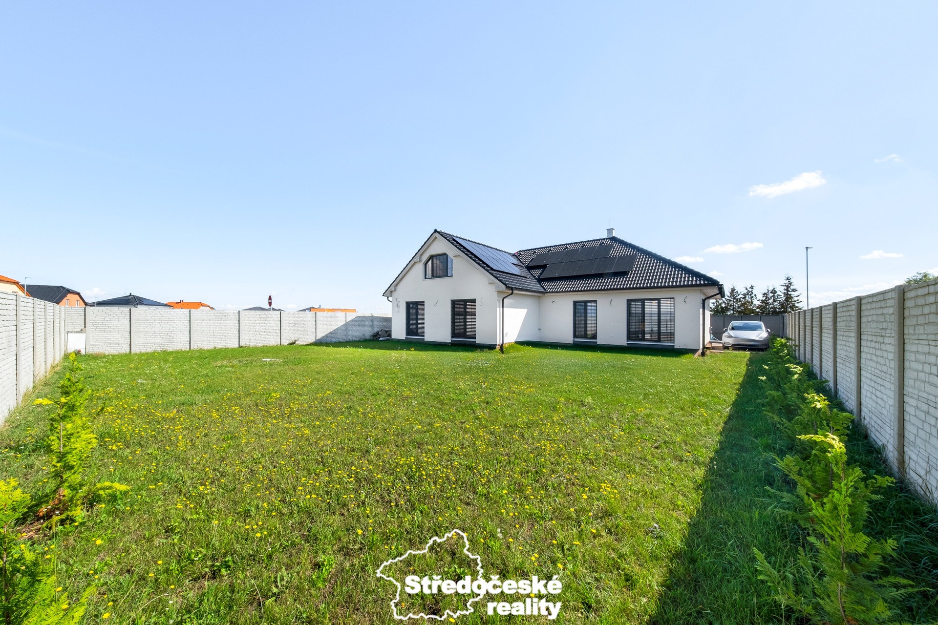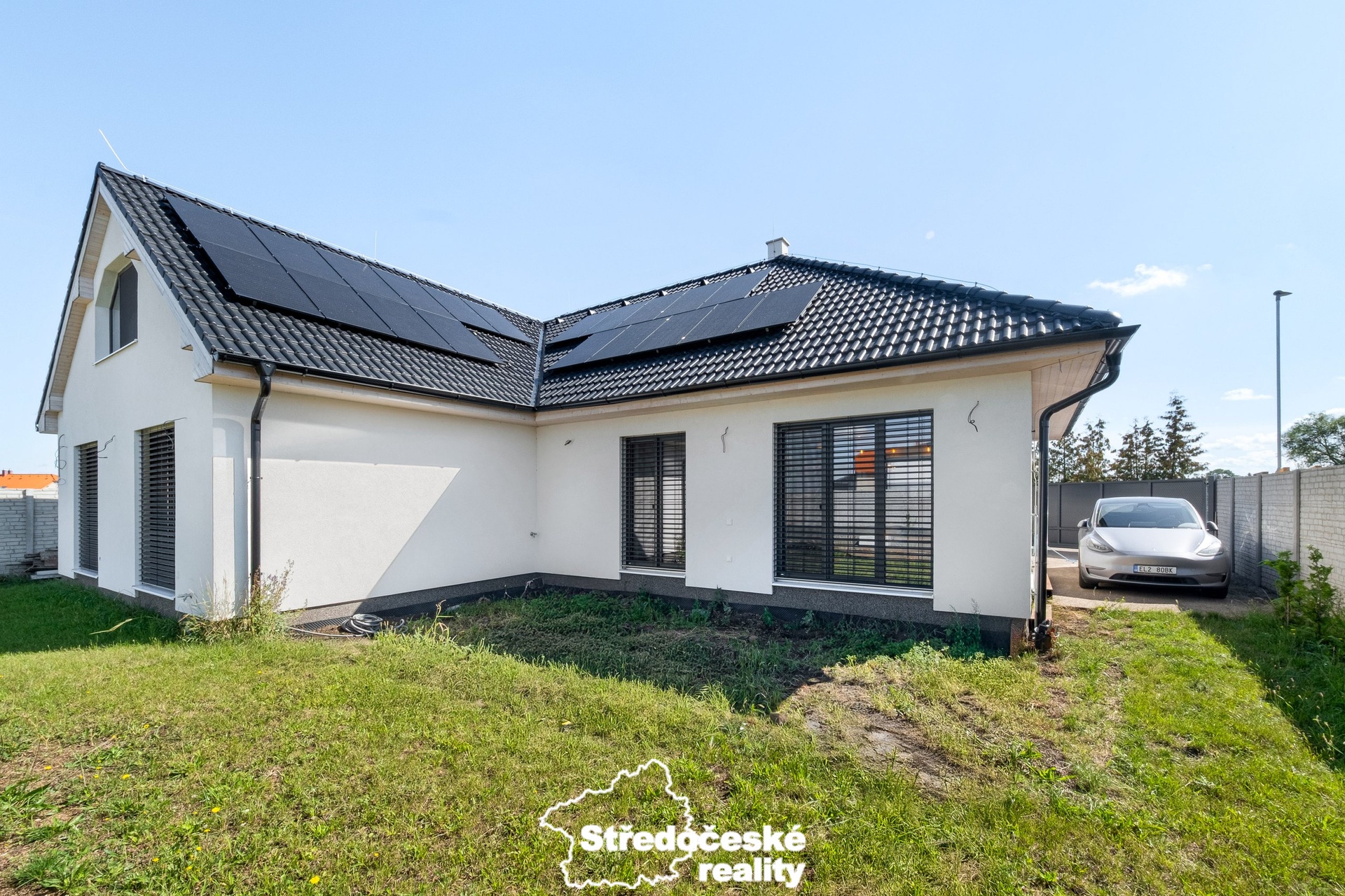 Hledáte domov, který splní potřeby celé rodiny, nabídne dostatek prostoru a zároveň využívá moderní technologie, které vám ušetří čas i peníze? Mám pro vás atraktivní novostavbu z roku 2022 v obci Polerady, jen pár minut od Prahy. Orientační náklady na provoz: • elektřina v průměru za posledních pět měsíců cca 2.500Kč / měsíc včetně nabíjení elektromobilu, fakturovaná spotřeba díky solárním panelům za toto období je pouze 190kWH/měsíc • voda: 600,-Kč / měsíc Dům je vybaven solárními panely s bateriemi, tepelným čerpadlem, podlahovým topením a venkovními žaluziemi. Veškeré technologie můžete ovládat pohodlně přes mobilní aplikaci Loxone – od vytápění, ovládání venkovních žaluzií až po přípravu pro kamerový systém. Součástí vybavení jsou také dvě 11kW nabíjecí stanice pro elektromobil a elektrická brána. Dům je napojen na obecní vodovod a kanalizaci. Na zahradě je navíc nádrž na dešťovou vodu (10 m³) pro úsporné zavlažování zahrady. Topení je podlahové, každý pokoj má vlastní senzor ve vypínači. Základní popis dispozičního řešení domu: Přízemí (140 m² + terasa 40 m²): • reprezentativní vstupní chodba s dřevěným schodištěm, šatna a technická místnost, • prostorný a světlý obývací pokoj s přímým vstupem na terasu je propojen s moderní kuchyní, na míru vybavenou spotřebiči i vestavěnou vinotékou, • v klidové části přízemí najdete koupelnu se sprchou a WC, dvě samostatné ložnice, z nichž jedna má vlastní šatnu, dále hlavní ložnici s vlastní koupelnou a šatnou. Podkroví (cca 100 m²): • velký otevřený prostor připravený pro dokončení dle vašich představ – ideální jako herna pro děti, společenská místnost nebo domácí fitness • aktuální stav: podlahy jsou řešeny OSB deskami, stěny sádrokartonem, rozvedena je elektroinstalace včetně zásuvek a vyvedené topení. Pozemek o velikosti 784 m² je kompletně oplocený. V přední části najdete pergolu s posezením a dřevěnou kůlnu. Parkování je zajištěno na pozemku s dálkově ovládanými vraty. Obec Polerady nabízí mateřskou školu, dětská hřiště, a základní občanskou vybavenost. Větší školy, obchody a zdravotnická zařízení najdete v Brandýse nad Labem nebo ve Kbelích, Čakovicích a Letňanech s přímím autobusovým spojením na metro Letňany. Díky blízkosti Prahy je lokalita perfektní pro rodiny, které hledají klidné prostředí a zároveň rychlé spojení do města. Okolí vybízí k volnočasovým aktivitám – Labské cyklostezky, přírodní stezky, sportovní areály či koupaliště. V Poleradech se navíc pravidelně pořádají akce pro děti i dospělé, což posiluje sousedskou a komunitní atmosféru.