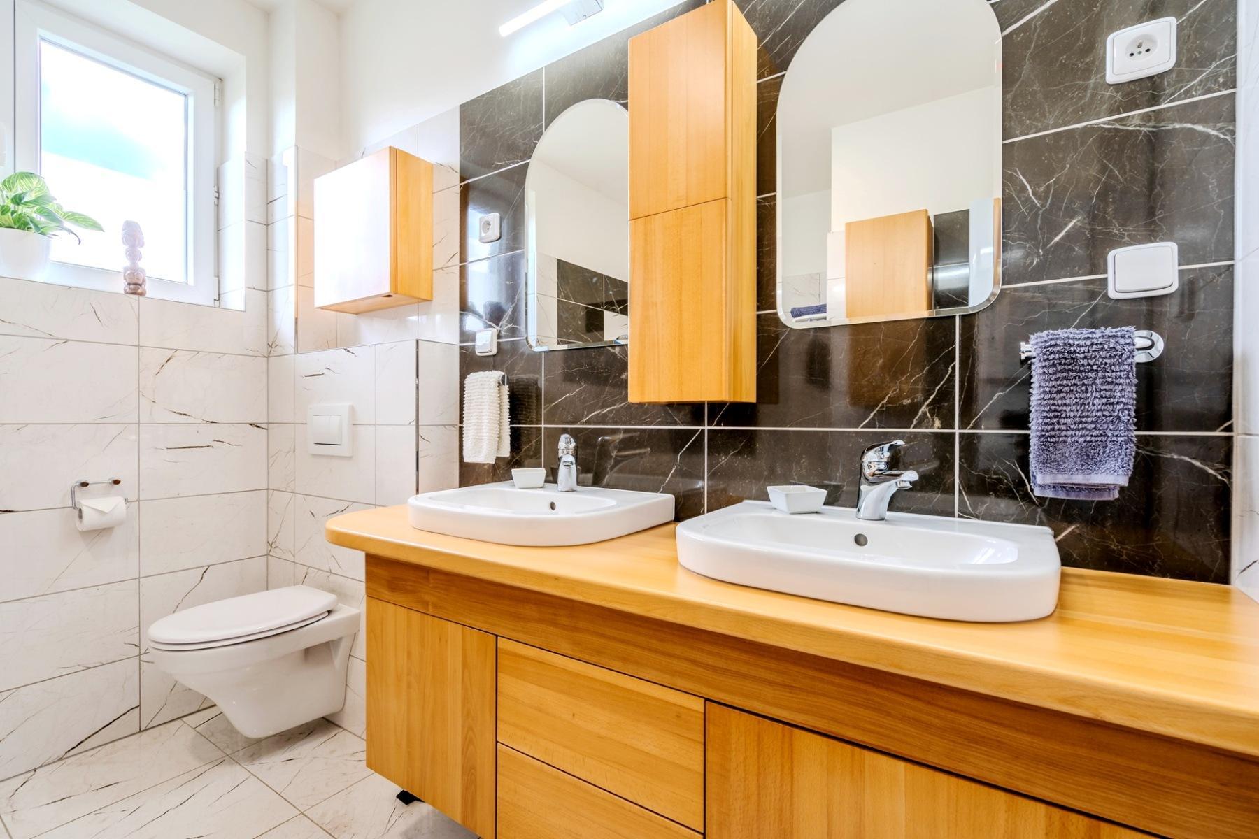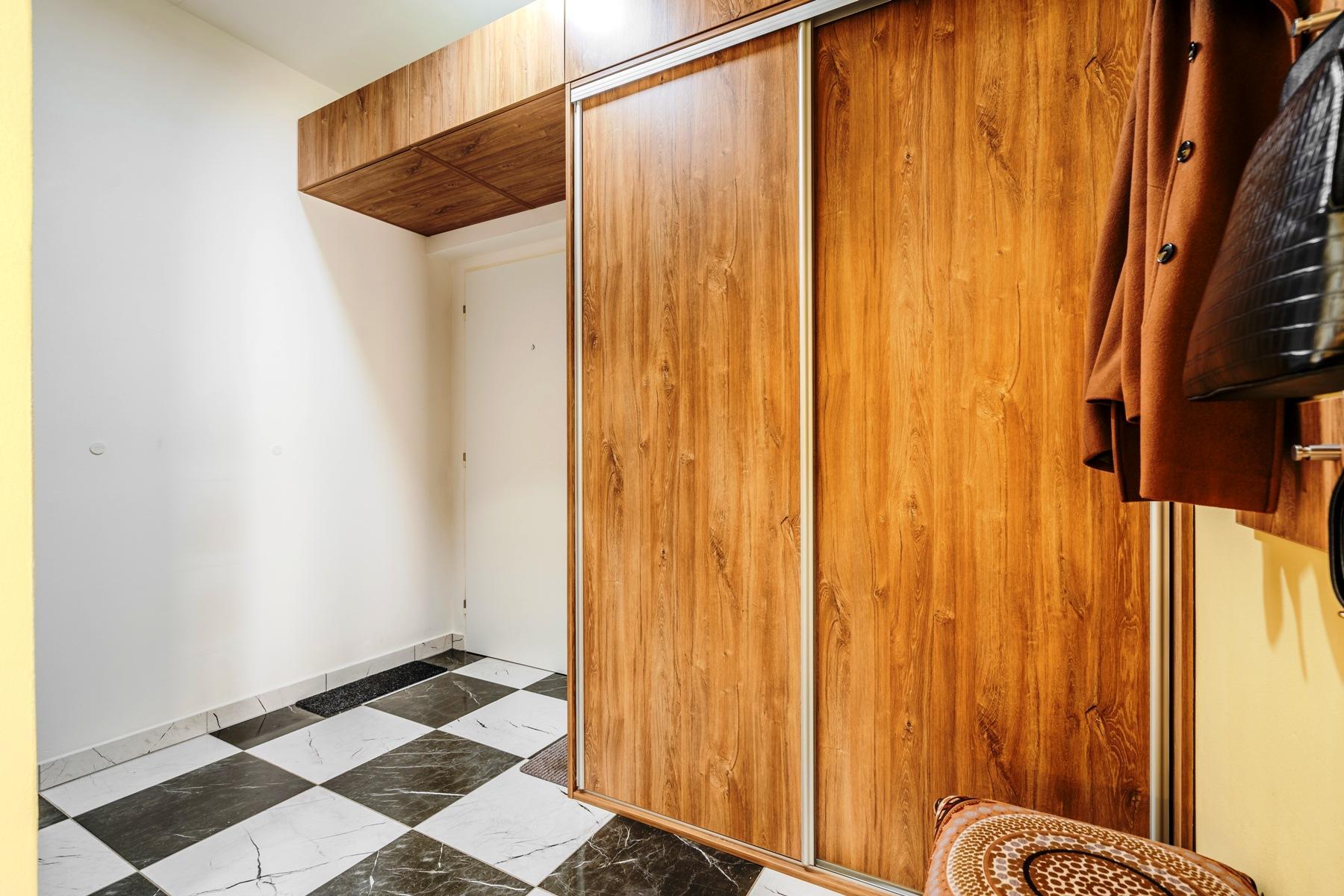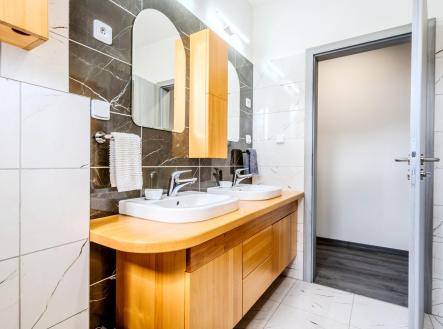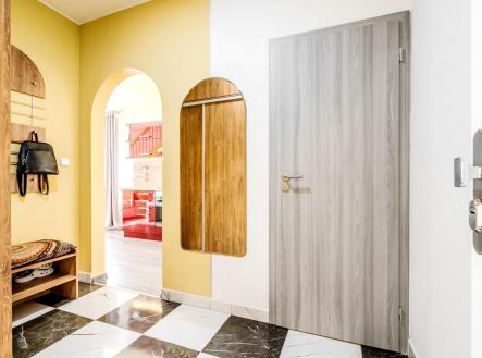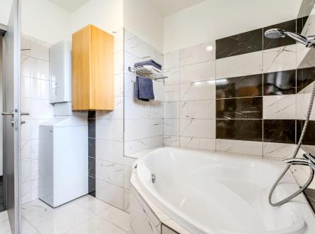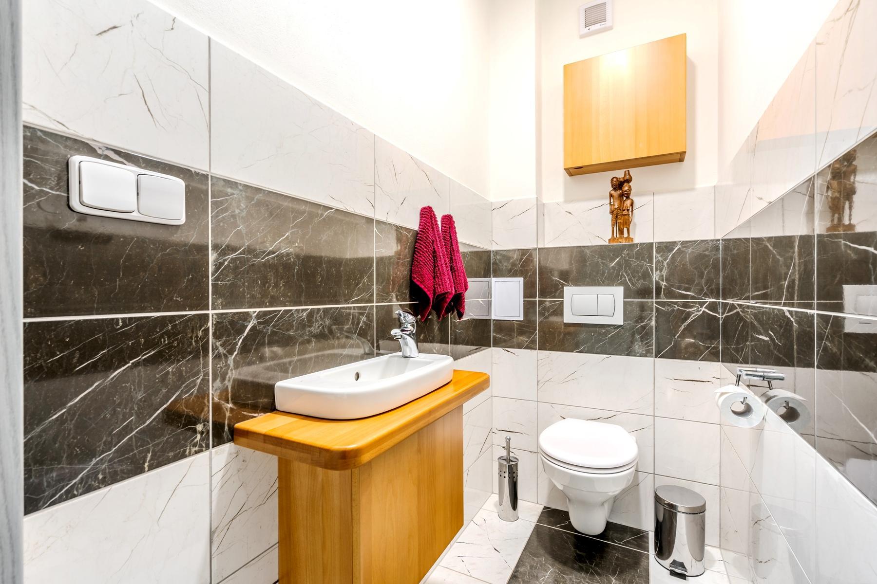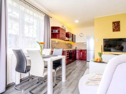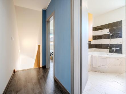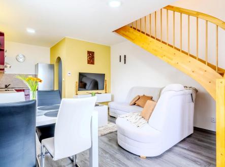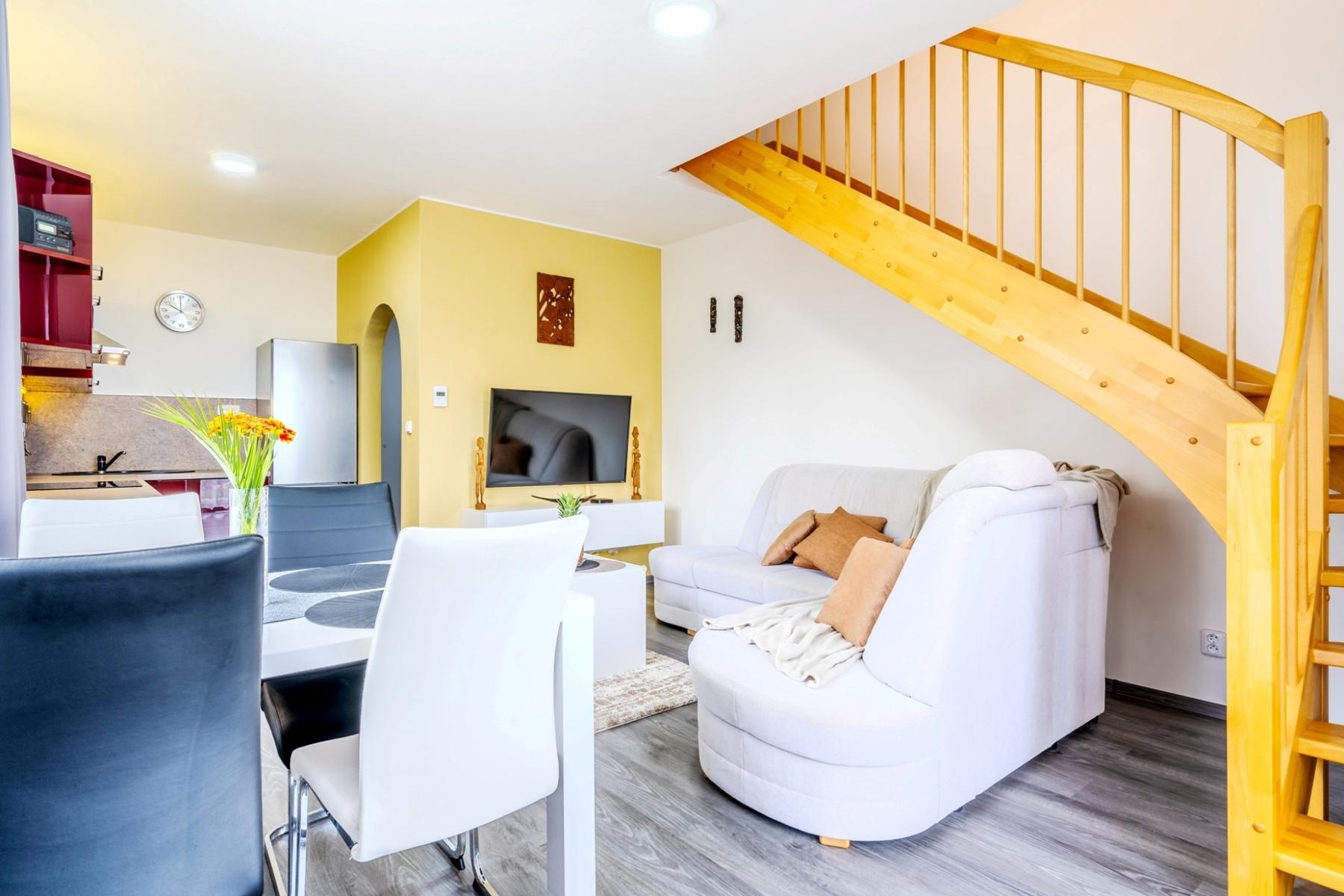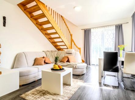 Dovolte mi představit mezonetový byt v novostavbě rodinného domu zkolaudovaného v roce 2018. Na první pohled Vás, oproti jiným bytům v místě, zaujmou prakticky řešené změny původní dispozice. Rozšířená vstupní chodba s vestavěnými skříněmi a bočním průchodem do obývací části, díky čemuž vznikla plocha pro nástěnnou TV a v horním patře prostorná koupelna s rohovou vanou a dvěma umyvadly. Velkou devizou je bezesporu již založená a vzrostlá zahrada přes celou délku parcely. Hledáte-li klidné místo, žádanou lokalitu, moderní bydlení, kvalitní provedení bytu i dobrou dopravní dostupnost, čtěte dál. Byt o dispozici 3kk a s užitnou plochou 78 m2 se nachází v rodinném domě se třemi bytovými jednotkami. K bytu náleží zahrada o velikosti 235 m2 s přístupem do ulice a dvě parkovací stání před domem, u kterých je vybudován vjezd na zahradu. V přízemí se krom vstupní chodby (6 m2) a toalety (1,8 m2) s umyvadlem a závěsným WC nachází prosvětlený obývací pokoj (23 m2) s kuchyňským koutem a francouzskými dveřmi se vstupem na terasu/zahradu. V patře jsou dvě samostatné ložnice (12 m2 a 16,5 m2) a rozšířená koupelna (6,5 m2) se závěsným WC. Veškerý nábytek byl zhotoven na míru. WC, koupelna, postel, schodiště i vstup na půdu je vyroben z bukového masivu. Kuchyňská linka značky EGGER zhotovená na míru je vybavena spotřebiči značky BOSCH – indukce, mikrovlnná trouba, digestoř, trouba, pračka, myčka, lednice. Veškerá okna s ventilací jsou kryta sítí proti hmyzu a to včetně dveří na terasu. Velmi příjemná je orientace oken na sever /jih/východ, kdy je v celém bytě opravdu hodně světla. Kromě dlažby je ve zbytku interiéru vinylová podlaha zn. EGGER a v zimních měsících určitě oceníte podlahové vytápění v celém přízemí a horní koupelně. V ložnicích jsou pak deskové radiátory. Vytápění a ohřev vody je řešen elektrokotlem značky Protherm a požadovanou teplotu v prostoru lze nastavit na nástěnném termostatu. K bytu náleží z venku přístupná komora (4 m2) např. pro jízdní kola, pneu, zahradní techniku apod. Jako další úložný prostor lze použít pochozí půdu (také 4 m2). Zahrada poskytuje ideální prostor pro posezení, relaxaci, pěstování květin (zejména v jižní části, která je po většinu dne zalita sluncem), ale je tu i dost místa na pergolu, bazén, zahradní domek, a jiné. Ve střední části domu je přípojka vody pro zálivku zahrady popř. mytí auta a přípojka na 380V. Dále je zde vyveden elektrický kabel na 220V a zanořený prodlužovací kabel do zadní části zahrady pro elektrický gril či filtraci k bazénu apod. Polerady se nachází v okrese Praha - východ, 7 km od Prahy a 4 km od Brandýsa či Kostelce nad Labem. Obec s cca 800 obyvateli nabízí mateřskou školku, potraviny, pekařství, vyhlášené řeznictví, služby obecního úřadu, fotbalové i workout hřiště, hřiště pro děti a samozřejmě i hospodu, která je aktuálně v rekonstrukci. Aktuální náklady: 1.000,- záloha na vodné a stočné, 3.500,- záloha na elektřinu a 1.200,- obecní svoz odpadu/osobu/rok. Cena k jednání.