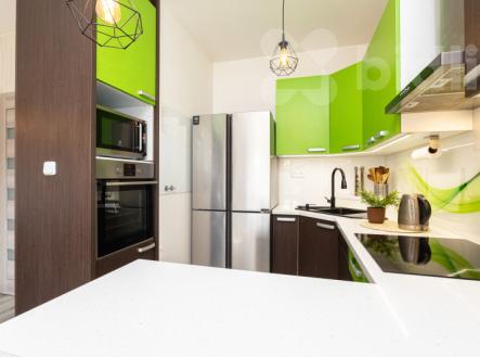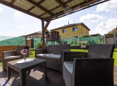 Prodej moderního bytu 3+kk se zahradou a bazénem, Polerady u Prahy