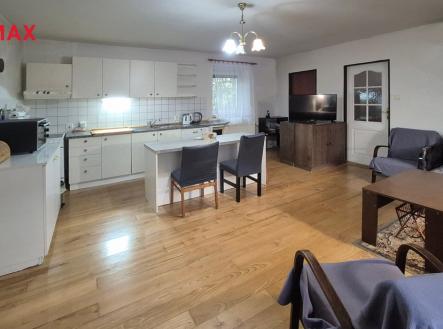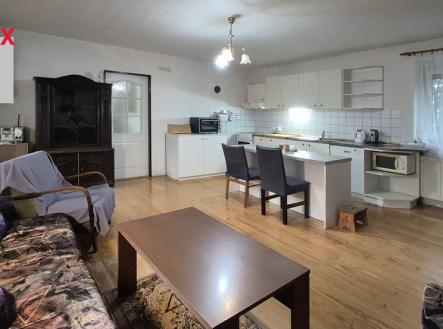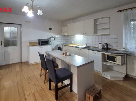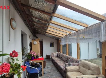 Exkluzivně nabízím k prodeji RD se dvěma bytovými jednotkami postavený na zastavěné ploše 353 m2 v Poličce, části obce Lezník. K výrazné přestavbě domu došlo koncem 70. let, k novější současné úpravě domu v 90. letech, kdy došlo k celkové modernizaci, renovaci podlah, výměny kuchyně, sociálního zařízení, výměně oken v obytných místnostech za plastová, také k modernizaci otopného systému apod. Dům se sestává z hlavní části s dispozicí 3+kk, nacházející se v přízemí domu, sestávající ze vstupního zádveří, zasklené verandy, předsíně, obývacího pokoje s kuchyňským koutem, spíží, 2 ložnic a sociálního zařízení (vany, sprch. koutu, umyvadla a WC). Ze zadní ložnice se dá vyjít na vydlážděnou část za domem se zastřešenou terasou o výměře 17,65 m2, která se nachází vzadu za domem a nabízí soukromí. V předsíni je poklop, kde je přístup do pěkného klenutého sklepa. Veranda je vytápěna a slouží jako další obytná místnost, nachází se na uzavřeném dvoře, takže nabízí rovněž naprosté soukromí. Mezi druhou částí domu - výměnku se nachází uzavřený dvůr. Výměnek má jednu obytnou místnost v přízemí s krbovými kamny na lokální vytápění, rovněž tak vlastní sociální zařízení (sprch. kout, umyvadlo a WC) a jeden pokoj v podkroví. Pod výměnkem je další menší sklípek přístupný přímo ze dvora. Nad celou obytnou částí hlavní části domu i výměnku a nad nebytovými prostoty se nachází prostorné půdy, kde by se daly případně vybudovat další podkrovní místnosti. Z verandy a ze dvora je přístup do kotelny, kde se nachází kotel na TP, který vytápí obě části domu, je zde i elektrokotel, kterým se však už dlouhou dobu netopilo. Naproti se nachází místnost s kachlovými kamny na TP, která sloužila jako černá kuchyně, je zde i přívod vody s umyvadlem, elektřiny. Dále se zde nachází dřevník a další přístřešky. Z předního vchodu a průjezdu se dá přes uzavřený dvůr projet zadními vraty až do zahrady. Nad obytnými částmi domu je střecha pokryta pálenou taškou a přístřešky plechovou krytinou. Celková podlahová plocha hlavní části domu se sklepem, verandou a kotelnou činí cca 135 m2, výměnek má i se sklípkem výměru 45 m2. Nebytové prostory: černá kuchyně a dřevník mají cca 33 m2. Dům je napojený na elektřinu, včetně třífázového připojení, dále na obecní vodovodní přípojku. Odpad je svedený do septiku. Plynová přípojka do domu zavedena není. Kolem domu je zahrada, vepředu předzahrádka, vzadu za domem větší zahrada s ovocnými stromy. Na konci zahrady je brána, kterou se dá vyjet na zadní cestu. Výměra zahrad činí 1110 m2, celková plocha všech pozemků i se zastavěnou plochou činí 1463 m2. Nemovitost nebude kompletně vyklizena. K domu patří plechová garáž před domem. Jedná se o pěknou nemovitost nacházející se od centra Poličky cca 5 km, ve které je veškerá základní občanská vybavenost. Část obce Lezník je známá vyšším počtem původních roubených chalup a statků, prostředí těchto starých objektů láká k procházkám po okolí až k Leznické studánce.