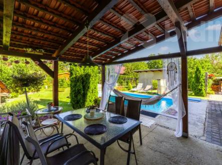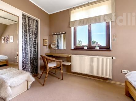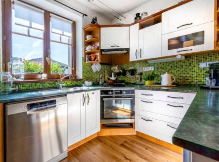 V Poříčanech by chtěl bydlet každý. A když je tu navíc ke koupi vkusná vilka s bazénem, není co řešit! Rodinný dům byl postaven na zakázku pro současné majitele v roce 2007 a díky jejich skvělé péči a vytříbenému vkusu je stále ve výborném stavu. Užitná plocha je celkem cca 140 m2 a dispozice 5+kk v domě + 1 obytná místnost na zahradě (využívaná jako zkušebna). Plocha pozemku je 1014 m2 a kromě terasy, velkého krytého bazénu a zahradního domku tu najdete spoustu ovocných stromů a květin. Interiér domu je zařízen jako pravý hřejivý domov. Kuchyni v přízemí dominuje velký dřevěný jídelní stůl a kachlová kamna. Kuchyňská linka je zařízena ve smaragdovém tónu a přiléhá k ní praktická spíž s oknem. Obývací část je propojena francouzským oknem s terasou. Dále je v přízemí prostorná předsíň, jeden samostatný pokoj, prostorná technická místnost s vlastním vchodem a atraktivní koupelna s velkým sprchovým koutem, toaletou a bidetem. Dům lze díky bezbariérovému druhému vchodu a pokoji v přízemí využít i pro vícegenerační soužití. V 1. patře jsou 3 samostatné ložnice, ložnice rodičů má i vlastní šatnu. Dále tu je koupelna s rohovou vanou a samostatné WC. Podkroví domu nabízí další úložný prostor. Na pozemku je až 5 parkovacích míst na zpevněné ploše u zadního vchodu do domu. Velmi příjemná krytá terasa se zahradním nábytkem propojuje obývací místnost s vchodem k bazénu, který je 6 m dlouhý a zastřešený. Na zahradě stojí samostatná dřevostavba, zateplená, která slouží jako hudební zkušebna, a zahradní domek. Vzrostlá zeleň chrání zahradu před pohledy z ulice. Pozemek je zcela rovinatý, udržovaný, osázený užitnými i okrasnými rostlinami. Poříčany jsou vzkvétající, dobře vybavená obec s perfektní dostupností. Díky blízkému nájezdu na D11 trvá cesta na okraj Prahy 15 minut, spěšným vlakem lze dojet až do centra Prahy za půl hodiny. Přímé vlaky jezdí i do Nymburka a Kolína. Nechybí tu mateřská a základní škola se skvělými výsledky při umisťování žáků do středních škol, sportovní kluby, lékaři, restaurační zařízení, pošta a samoobsluhy. Obec díky novým silnicím, chodníkům a fasádám obecních domů působí upraveně a příjemně. Žije také bohatým společenským životem. Nalézá se v drobné pahorkatině v blízkosti lesa Kersko, a tak i okolní prostředí je velmi půvabné.