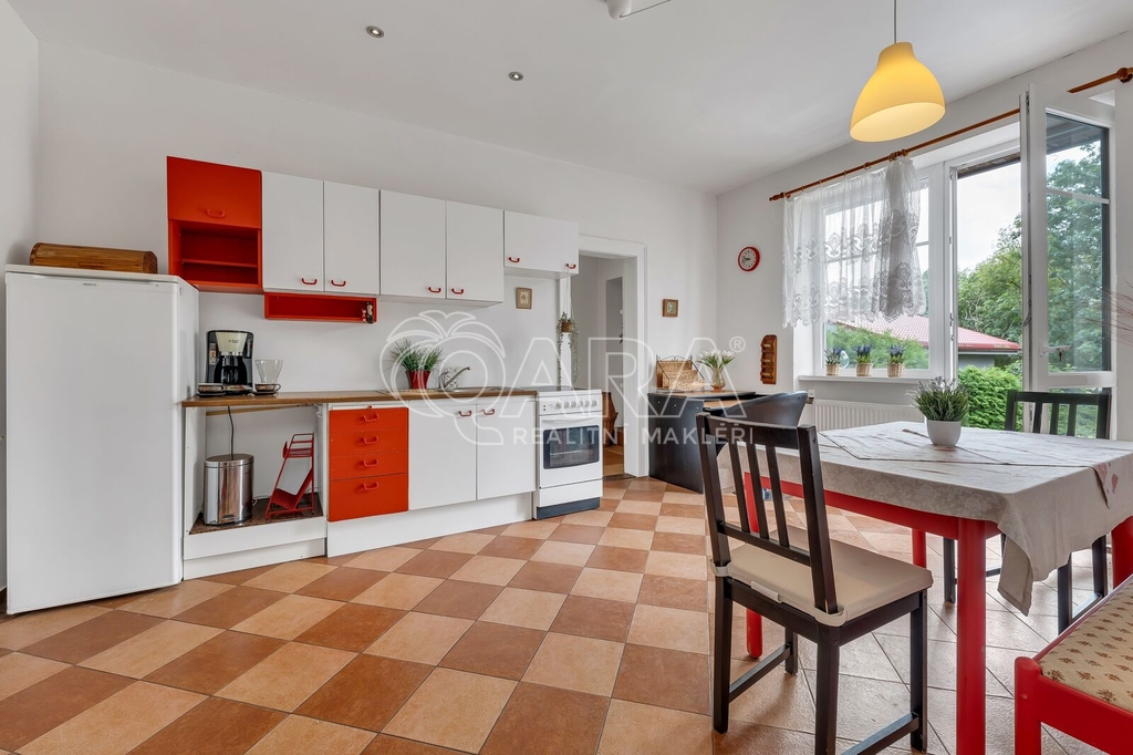 Hledáte velký dům pro rodinu, nebo potřebujete vícegenerační bydlení? Učarovali vám solitérní vily jako z první republiky? Chtěli byste velkou zahradu, ale nechcete se vzdát života ve městě? Pokud právě takové bydlení hledáte, pojďte se podívat se mnou na tento dům v Postoloprtech - možná je to ten pravý pro vás. Nenápadná vila ze čtyřicátých let dvacátého století v sobě ukrývá dva plnohodnotné byty o dispozici 2 plus 1. Zahradu s bazénem propojuje s domem terasa navazující na spodní byt. Horní byt disponuje další terasou, s příjemným výhledem. Pozemek o celkové velikosti 880 metrů čtverečních pak nabízí dostatek prostoru pro odpočinek i vaše zahrádkářské nápady. Dům prošel v průběhu let téměř kompletní rekonstrukcí - byla vyměněna okna, položena nová střešní krytina, změněno vytápění na plynové, zrekonstruovány obě koupelny, vybudovány dvě moderní kuchyně, vyměněny stoupačky, položeny nové podlahy a vybudován bazén s filtrací. Do kompletní rekonstrukce domu tak zbývá jen zateplit fasádu a pár drobností. Dům je podsklepený, je napojen na obecní vodovod a kanalizaci, a je vytápěn kombinovaným plynovým kotlem. Navíc je na zahradě studna, takže s napouštěním bazénu nebo zálivkou zahrady si nemusíte dělat starosti. Na pozemku se dále nachází samostatná garáž s prostorem pro dílnu. Velkou předností domu je pak jeho poloha - nachází se blízko vlakového nádraží, které Postoloprty propojuje s okolními městy - Louny, Mostem a Žatcem. Do nich se vlakem dostanete za méně než 20 minut. Navíc již brzy bude kompletně dokončena dálnice D7, díky které se například na letiště Praha Ruzyně dostanete autem už za půl hodiny. Rádi byste byli vlastníkem takového domu? Není nic jednoduššího než mi zavolat a domluvit se na prohlídce – rád vás osobně provedu.