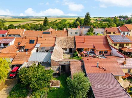 Zajímavá uliční šíře, pozemek s možností výstavby dalšího domu a štědrá zahrada přístupná i ze zadní části… To jsou základní parametry právě tohoto řadového rodinnému domu s dispozicí 2+1, který se nachází na ulici Ponětovská v obci Prace. Podlahová plocha domu činí přibližně 58 m2, přičemž na hlavní stavbu navazují hospodářské přístavky o ploše cca 22,6 m2 a otevřená stodola s výměrou 33,5 m2. Hospodářské přístavky jsou částečně podsklepené. Celková plocha pozemku činí 801 m2. Dům je svým stavem určen ke generální rekonstrukci nebo demolici. Dle současného územního plánu lze u nové výstavby počítat s jedním nadzemním podlažím a obytným podkrovím. Dále je potřeba počítat se sedlovou střechou. Minimální poměr zeleně na pozemku musí činit 40 %. Současná konstrukce domu je ze smíšeného zdiva a není zateplena. Základy jsou smíšené kamenné bez hydroizolací. Okna jsou původní – dřevěná kastlová. Na domě je v uliční části sedlová střecha a ve dvorní části pak pultová. Do domu je zavedena elektřina a je zde také zbudovaná přípojka k plynu (aktuálně odpojeno). Vodovodní a kanalizační řád je doveden do průjezdu domu. Přípojky do domu nejsou vybudovány. Na pozemku je dále studna na užitkovou vodu. Dispozice domu se skládá ze vstupní chodby a tří pokojů. V současném dispozičním řešení není koupelna ani WC. V neposlední řadě je potřeba také zmínit možnost nové výstavby na zahradě za domem. S ohledem na šíři pozemku lze uvažovat o umístění dvojdomu společně s vlastníkem sousední nezastavěné parcely nebo lze realizovat výstavbu samostatně stojícího domu. V tuto chvíli je zpracována studie zastavitelnosti rodinným domem formou dvojdomu. K umístění stavby na hranici pozemku je v rámci studie zajištěn písemný souhlas vlastníka vedlejší parcely. Řešení počítá s domem o dispozici 5+KK o zastavěné ploše 75 m2. Užitná plocha domu pak činí 103,4 m2. Počítá se také s vybudováním dvou parkovacích míst před domem. Z inženýrských sítí se na hranici pozemku nachází elektrická síť a veřejný vodovod. Kanalizace je ve vzdálenosti přibližně 100 metrů. Odpady je tak lepší řešit septikem či jímkou jako u sousedních staveb. Příjezd na pozemek je po komunikaci ve vlastnictví obce. Pokud tedy právě hledáte nemovitost, která má zajímavý pozemek, dobrou uliční šíři a nebojíte se pustit do větší rekonstrukce či výstavby, pak by pro Vás tato možnost mohla být tou pravou. Nemovitost je k dispozici ihned, prohlídky jsou možné po předchozí telefonické dohodě.