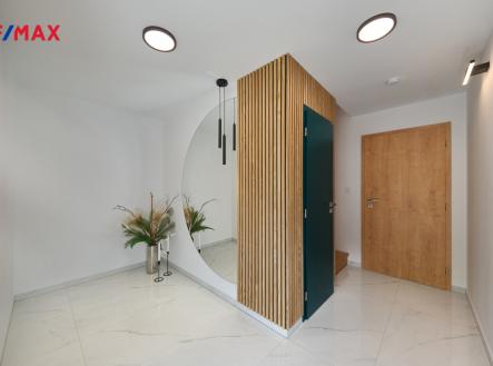Nabízím novostavbu, ve které se snoubí moderní design, pozitivní Feng Shui energie s energetickou úsporností třída A . Jedná se o dvoupodlažní dřevostavbu o užitné ploše 95m2 s dvěma parkovacími stáními/ jedno z nich zastřešené/, vlastní soukromou zahradou, zastřešenou terasou s možností dokoupení garáže. Dům je krajní, obklopen vzrostou zelení a je vytvořen dle FENG SHUI projektu. INTERIÉR: Při vstupu do domu vás okouzlí velké zrcadlo a dřevěná stěna v prostorné vstupní chodbě z níž vedou krásné dveře v zeleném dekoru na toaletu. Naproti je vstup do technické místnosti s kondenzačním kotlem a prostorem na pračku, sušičku. Prosvětlený obývací pokoj propojený s kuchyňským koutem a jídelnou nabízí vzdušný prostor pro rodinná setkání. Velká okna zajišťují dostatek denního světla a přímý vstup na zastřešenou terasu s nezaměnitelným výhledem na Prachatice. Jídelní kout je vybaven stolem z masivu, židlemi. Kuchyňská linka i ostrůvek je sladěn k celému interiéru. Dubové schodiště s kovovým zábradlím vás zavede do horního patra, které disponuje třemi neprůchozími pokoji z nichž je krásný výhled do zeleně. V patře se nachází i designová koupelna s vanou a toaletou. Skříňka i podsvětlené kulaté zrcadlo je součástí vybavení. V celém domě je použita kvalitní laminátová podlaha nebo velkoformátová dlažba, zabudované kolejnice na záclony a závěsy a designové osvětlení. EXTERIÉR : Vnější podoba domu přináší harmonii, která vás uchvátí svou pečlivou kombinací promyšlených detailů. Předzahrádka, zdobená okrasnými rostlinami, solitérním kamenem osvíceným soumraovým systémem, podtrhuje celkový estetický dojem. Obložená, podsvícená zeď kameny s dominantní plechovou brankou oddělující přední parkovací místo od zahrady přidává na atraktivitě. Jedno /ze dvou/ parkovacích stání je kryté a vybavené třífázovou zásuvkou. Krytá terasa má jihozápadní orientaci. Část pozemku za domem je rovná a dálepak se pozemek pozvolna svažuje. Svařovaný antracitový plot na pozemku poskytne nejen soukromí, ale i bezpečí. TECHNOLOGIE Tento mimořádně úsporný dům s energetickou náročností třídy A, vám umožní žít efektivně s nízkými náklady. Vytápění je zajištěno tepelným čerpadlem vzduch/voda DE DIETRICH 6kw, které je spolehlivě doplněno podlahovým topením v přízemí a radiátory v horním patře. Možnost instalace fotovoltaické elektrárny, která vám umožní vyrábět vlastní energii. Dům je připraven k okamžitému nastěhování. V rámci prodeje jsem vám připravena poskytnout poradenství k dotvoření interieru dle Feng Shui celého domu. Pro nové majitele mám připravený nejen Feng Shui projekt, ale i dar, který jim bude v domě dělat radost. Nepředávám jen nemovitost, předávám domov…