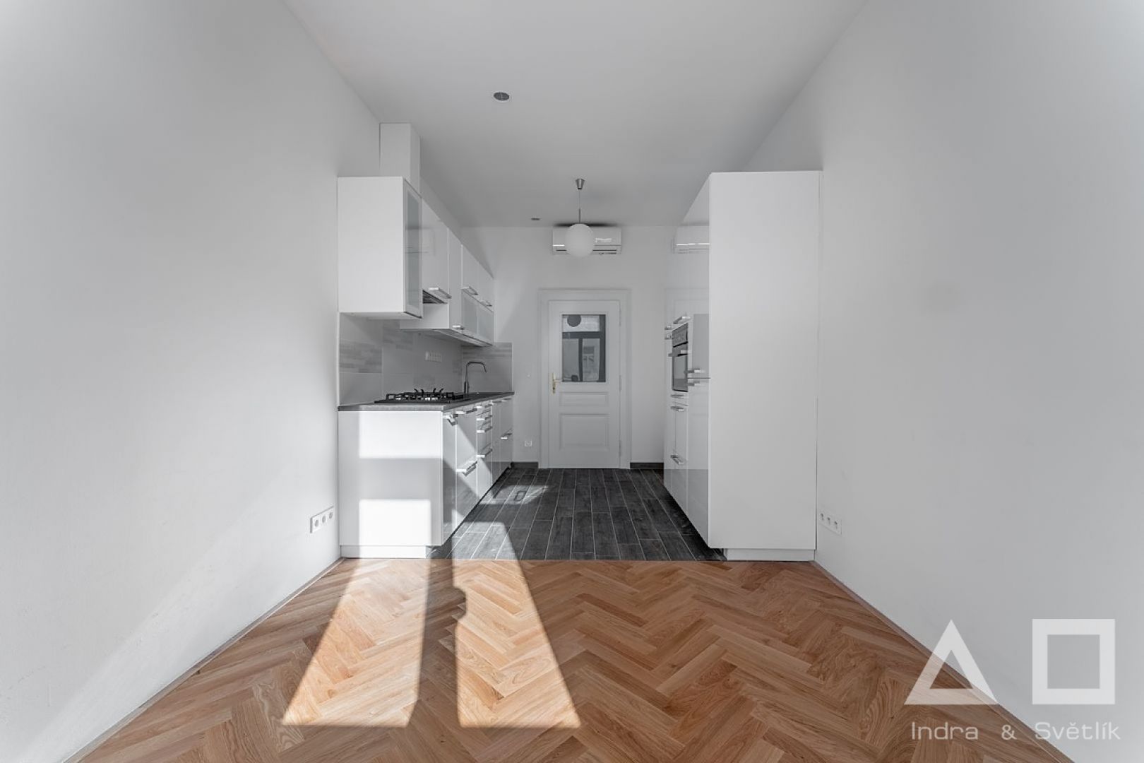 Dovolujeme si Vám nabídnout k pronájmu byt 1+1 o výměře 47,6 m2 v 5. NP činžovního domu v Korunní ulici na Praze 2 – Vinohrady, tři minuty chůze od metra a tram Náměstí Míru. Byt je po celkové rekonstrukci, včetně oken a dveří. V obou hlavních místnostech je klimatizace. Kuchyňská linka - plynová varná deska, kombinovaná trouba (horkovzdušná a mikrovlnná), myčka, lednice, mrazák a digestoř s odtahem ven. Koupelna - sprchový kout, kombinovaná pračka se sušičkou. WC samostatné. V předsíni je kromě vestavěné skříně ještě vestavěný prostor s policemi, který může sloužit jako spíž. V předsíni je el. podlahové topení. V obou pokojích je příprava elektro k případným el. žaluziím, nebo závěsům. Podlahy – parkety, dlažba. Vytápění a ohřev vody – vlastní plynový kotel. Internet O2. V místě veškerá občanská vybavenost.