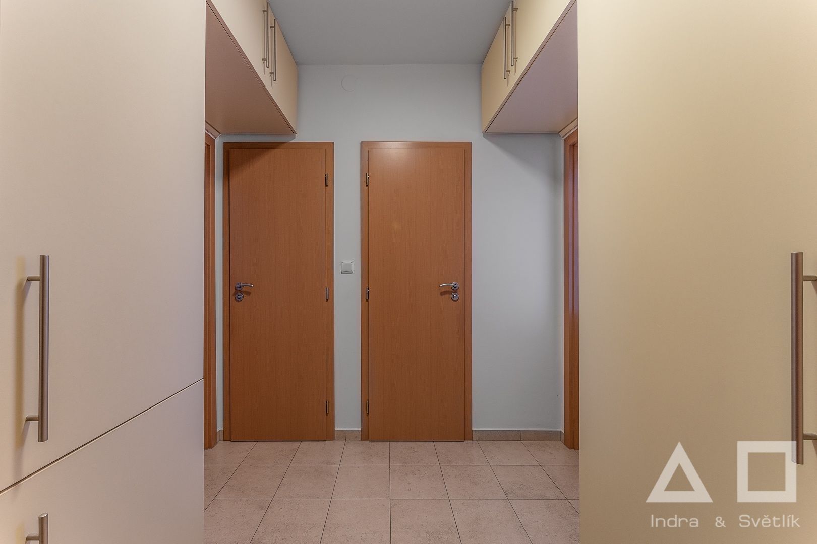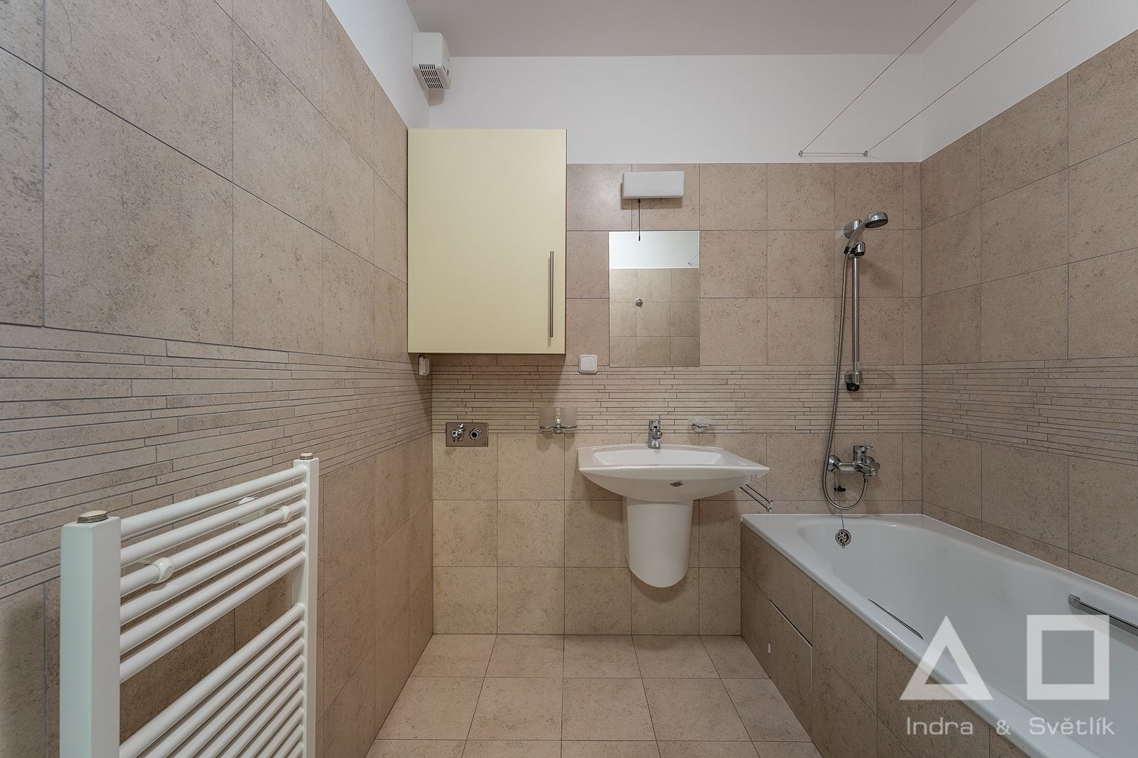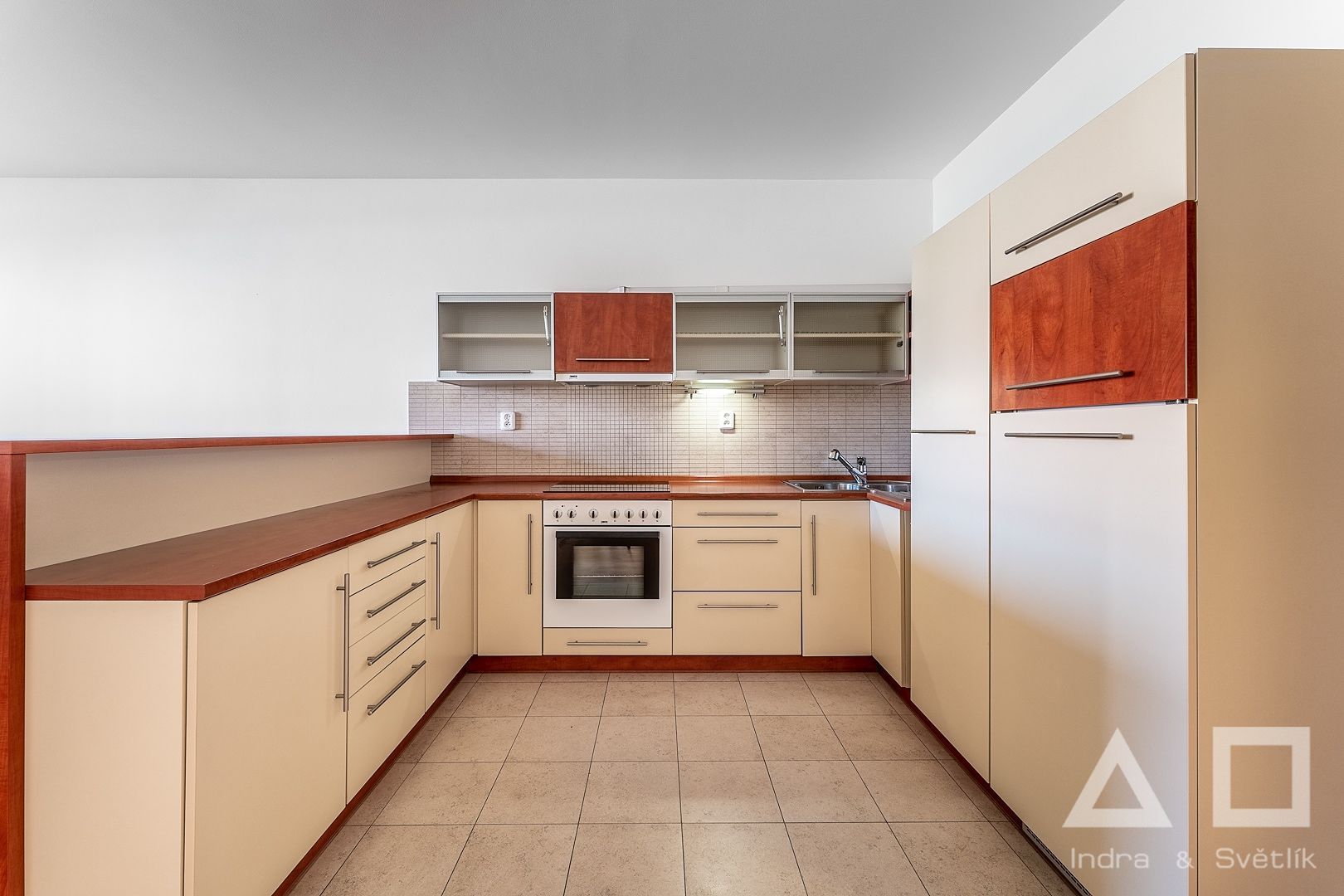 Dovolujeme si Vám nabídnout k pronájmu byt o velikosti 2+kk, o výměře 64 m2, situovaný v přízemí novostavby. Byt je vybaven kuchyňskou linkou (el. trouba, sklokeramická deska, digestoř, lednice, mrazák), koupelnou s vanou a samostatným WC. Podlahy plovoucí, koberec a dlažba. Okna jsou plastová. K bytu náleží garážové stání umístěné v 1. PP domu za cenu 1.000 Kč/měsíc. K dispozici sklep (4 m2) v 1. PP domu. V okolí domu je veškerá občanská vybavenost. Velice dobrá dostupnost MHD - bus Livornská - 10 min. od stanice metra C Háje.