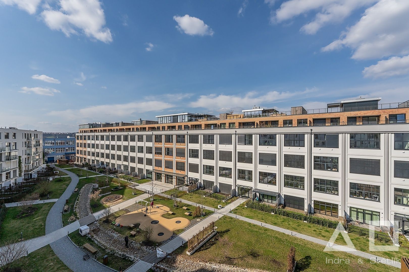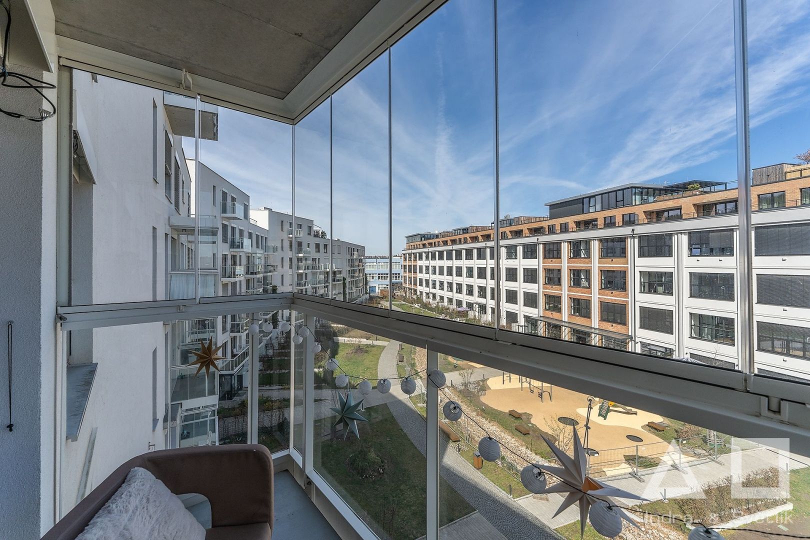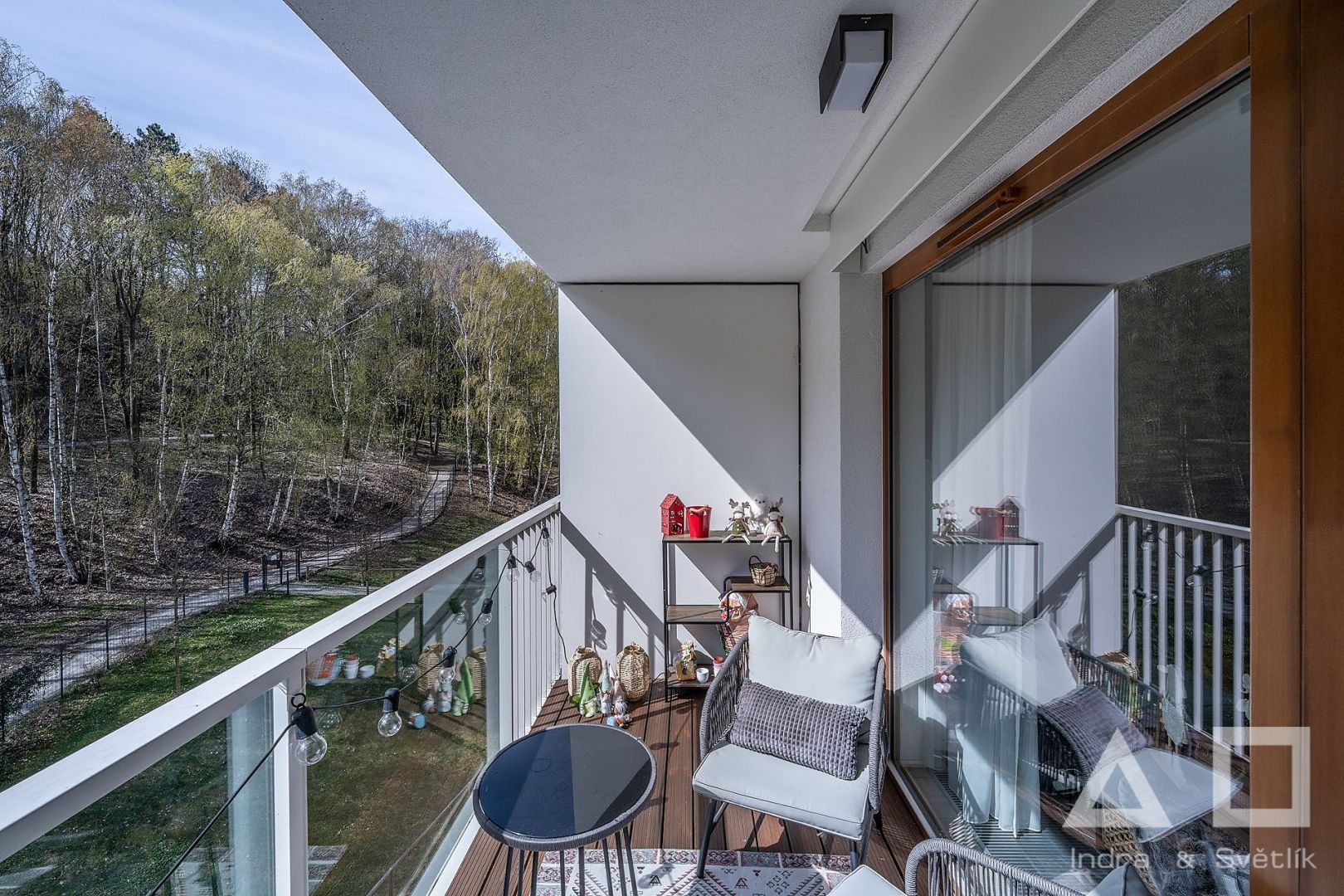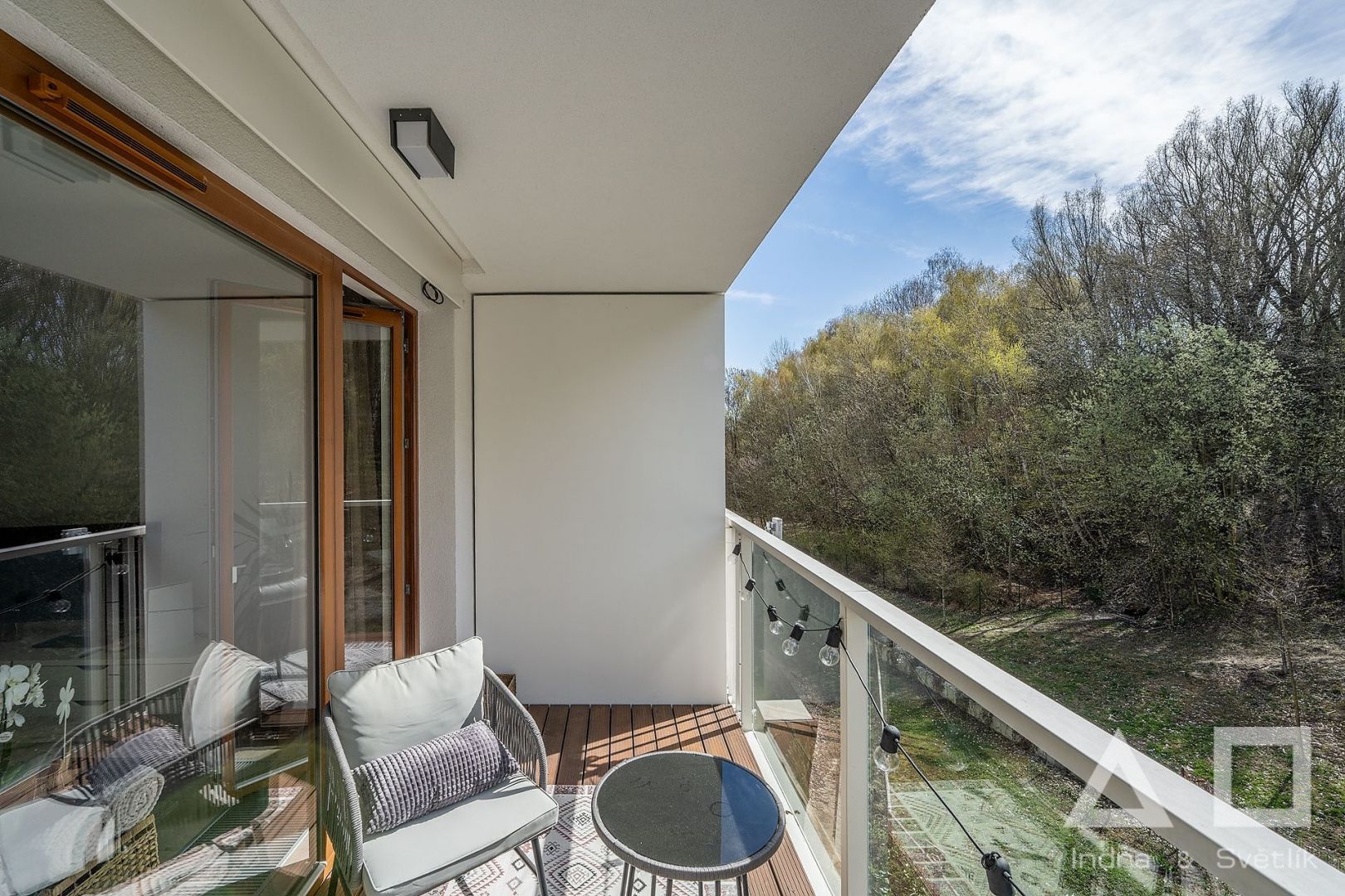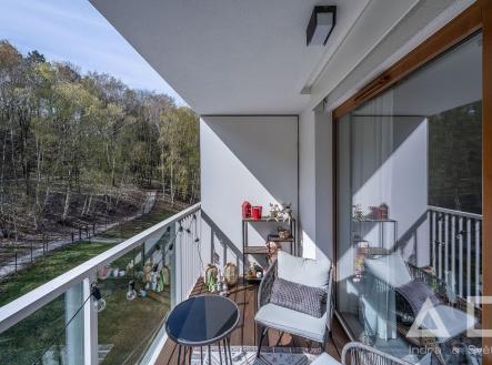 Dovolujeme si Vám nabídnout k pronájmu moderní komfortně řešený byt 3+kk o výměře 77 m2 s terasou (7 m2) a balkonem (4,5 m2) umístěný v 5. NP novostavby s výtahem v Rezidenci AALTO Cibulka na Praze 5 - Košíře. Dispozici bytu tvoří obývací pokoj s kuchyňským koutem (28,5 m2) s moderní plně vybavenou kuchyňskou linkou - indukční varná deska, el. trouba, myčka, mikrovlnná trouba, lednice a mrazák. Z obývacího pokoje je přístup na terasu orientovanou na jižní stranu a s výhledem do lesoparku Cibulka. Dále ložnice (15,5 m2) s přístupem na balkon, pokoj (12,5 m2), koupelna s vanou a samostatné WC, komora (2 m2), chodba (9,5 m2). Plovoucí dřevěná podlaha. K bytu náleží sklepní kóje (5 m2) umístěná v 1. PP domu. K bytu je možnost pronajmout garážové stání umístěné v 1. PP za cenu 2 000 Kč/měsíc. Byt se nachází v klidném, soukromém a bezpečném rezidenčním areálu s recepcí a ostrahou fungujících 24/7. Vnitroblok areálu nabízí rezidentům zelený park, posezení a dětské hřiště. V areálu je dále k dispozici fitness, pekárna a kavárna/vinárna. Okolí domu je plné příležitostí pro sport i odpočinek – areál stojí přímo na okraji rozlehlého přírodního parku a v blízkosti se nachází také oblíbené motolské 9jamkové golfové hřiště. Autobusová zastávka Naskové 3 min chůze (12 min na metro B – Anděl), zastávka vlaku Cibulka 7 min chůze.