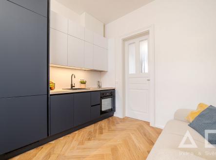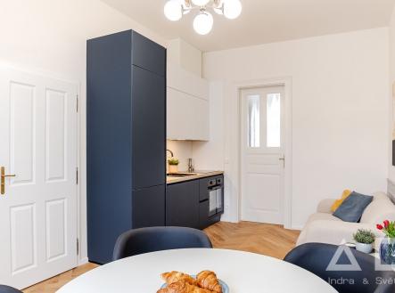 Dovolujeme si Vám nabídnout k pronájmu kompletně zrekonstruovaný a moderně vybavený byt 2+kk o výměře 49,5 m2 ve 4. NP klasického vinohradského činžovního domu bez výtahu v ulici Velehradská. Dům se nachází v prestižní části Vinohrad, která si zachovala svůj autentický génius loci a typickou vinohradskou atmosféru. Nájemník bude prvním rezidentem bytu po rozsáhlé rekonstrukci. Dispozici bytu tvoří obývací pokoj, kuchyně s plně vybavenou kuchyňskou linkou (indukční varná deska, el. trouba, mikrovlnná trouba, lednice, mrazák, myčka a digestoř). Koupelna se sprchovým koutem, samostatné WC. Podlahy - dřevěné parkety. V místě je veškerá občanská vybavenost, mnoho restaurací, kaváren, obchodů. V blízkosti domu tramvajová zastávka a metro Jiřího z Poděbrad (linka A). V pěší dostupnosti se nachází oblíbený vinohradský park Riegrovy sady. Nedaleko OC Flora.