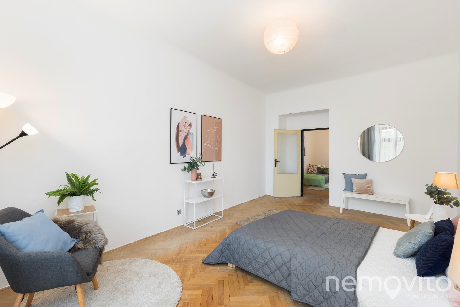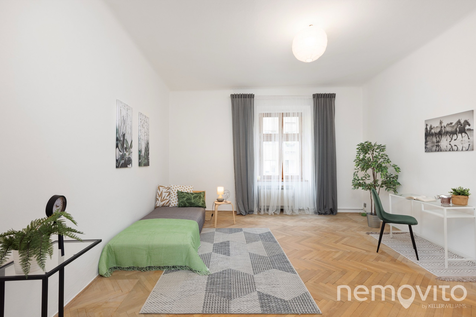 Byt 2+1 s velkým sklepem a možností parkování v tradičním cihlovém domě bez výtahu. Dům je skvěle a pravidelně udržovaný, zatímco byt je původní a ke kompletní rekonstrukci. Nachází se v ulici Bubenská, tedy na spodním okraji Letné u nádraží Bubny. K dispozici je ihned. Byt má 69 m2 (dle laseru 73 m2) a nachází se ve třetím podlaží domu s třímetrovými stropy, přičemž nová okna jsou orientovaná na východ (ulice) i na západ (vnitroblok). 3 místnosti o ploše 15, 23 a 23 m2 jsou řešeny v průchozí dispozici s umístěním kuchyně a koupelny u vstupní části. Jednu příčku odstranit lze, druhou ne. V bytě jsou původní parkety a vytápění je řešeno prostřednictvím WAW. Koupelna prošla před pár lety částečnou rekonstrukcí, obecně je však celý byt na předělání. Dům je udržovaný - nová okna, fasáda, čisté společné části budovy s fantastickým původním schodištěm a nové sklepy se vzduchotechnikou (jedna z velkých ocelových kójí náleží k bytu - uvedená plocha je bez sklepa). V rámci SVJ jsou velmi nízké poplatky, neboť společenství pronajímá garáže ve vnitrobloku a generuje tak značný příjem. Dvůr také umožňuje parkování vozidel vlastníků. Budova se nachází v ulici Bubenská přímo naproti novému nádraží Bubny, jehož okolí bude směrem k domu postupně přeměněno v park. Dostupnost je špičková - na Vltavskou pěšky 450 metrů, naproti tomu do Stromovky 700. Pokud vás o bytě zajímá více informací, rád vám poskytnu odkaz na web s širším popisem, plánek, rozpisem plateb a podobně.