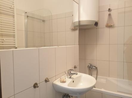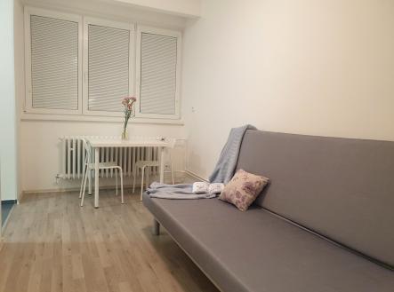 Nově zcela zrekonstruovaný a částečně zařízený byt v klidné části v zeleni, 2+kk, 40 m2, navíc velká komora v bytě a sklípek přímo před bytem. Moderní nová kuchyňská linka na míru s plně integrovanou vestavnou myčkou nádobí, se sklokeramickou varnou deskou, vestavnou pečící troubou, samostatnou lednicí se samostatným prostorným mrazákem, mikrovlnnou troubou, vestavnou digestoří. Jídelní stůl, dvě židle. Rozkládací pohovka (viz. foto). Do ložnice je možné dodat manželskou postel s rošty (bez matrace). V chodbě 2 vestavěné skříně, věšáková stěna, zrcadlo. V koupelně vana se skleněnou vanovou zástěnou pro sprchování, koupelnové doplňky, topný žebříček, mělká pračka. Samostatné závěsné WC. V prostorné komoře policová skříň přes celou stěnu + další hluboké police. Na podlahách nová plovoucí podlaha a dlažba, ve všech oknech stříbrné žaluzie. V bytě je pevná tel. linka, pevný internet. V přízemí cihlového domu bez výtahu. Byt s dostatkem klidu a soukromí. Ve vilové rezidenční zástavbě, dům po rekonstrukci a zateplení. Z oken pohled do příjemné společné okrasné zahrady, která je celá oplocená, možnost posezení, grilování apod. Velmi klidná lokalita s dobrou dostupností do centra Prahy, v blízkosti parku.