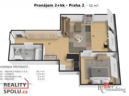 Pronájem bytu, 2+kk, 52 m²