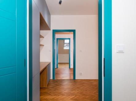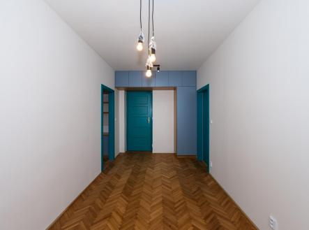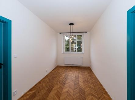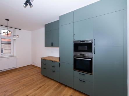 Nabízíme k prodeji světlý, prostorný a výjimečný byt 4+1 o celkové ploše 100 m (včetně zasklené lodžie), umístěný ve 3. nadzemním podlaží udržovaného domu v klidné vilové čtvrti Prahy 5 Smíchov, nad parkem Klamovka. Součástí nabídky je samostatná zděná garáž o velikosti 24 m, vlastní zahrada o výměře 83 m a sklep v suterénu domu 9 m. Byt disponuje čtyřmi průchozími pokoji, prostornou vstupní halou a velkorysou kuchyní. Orientace východ jih západ zajišťuje dostatek denního světla po celý den. Nemovitost je po kompletní a velmi zdařilé rekonstrukci a je připravena k okamžitému nastěhování nový majitel bude prvním uživatelem po rekonstrukci. Kuchyně: Prostorná kuchyně s kuchyňskou linkou na míru a vestavěnými spotřebiči: lednice s mrazákem myčka indukční varná deska digestoř mikrovlnná trouba horkovzdušná trouba Dřevěná pracovní deska, LED podsvícení, horní svítidla a dřevěná podlaha. Do kuchyně bude ještě doplněn obklad mezi horní a spodní část linky ve stejném designu jako pracovní deska. Interiér a detaily: modré interiérové dveře v celém bytě vestavěné skříně v modré barvě kombinované s přírodním dřevem nové radiátory s termohlavicemi nové rozvody elektřiny a odpadů Tyto prvky dodávají bytu osobitý charakter a činí jej ojedinělým na trhu. Hala a lodžie: Z prostorné haly je vstup na zasklenou lodžii o výměře 3,2 m s výhledem do zahrady. Lodžie je vybavena radiátorem a lze ji využít jako pracovní kout nebo relaxační prostor. Budou doplněny také interiérové dveře mezi halou a lodžií. Koupelna a WC: koupelna s vanou se zástěnou vestavěná stěna s pračka + sušička samostatné WC moderní obklady a dlažby Výhody: samostatná zděná garáž 24 m (elektrické ovládání, vstup z ulice) vlastní zahrada 83 m sklep v suterénu domu Na přání je možné řešit vestavěnou skříň pro zakrytí plynového kotle. Lokalita: Vyhledávaná vilová čtvrť Smíchova klid, zeleň a výborná dostupnost: autobusová zastávka Pod Lipkami (linky 149, 191) metro Anděl / Zličín cca 10 minut kompletní občanská vybavenost v okolí Byt je volný ihned / dle dohody a je ideální volbou pro klienty, kteří hledají kvalitní bydlení s charakterem, garáží a vlastní zahradou v jedné z nejžádanějších částí Prahy 5. Energetická náročnost: Stav energetického průkazu aktuálně není dokončen. Energetická náročnost budovy bude doplněna po vydání průkazu.