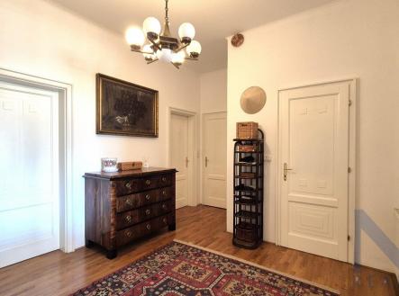 Nabízíme Vám jedinečnou příležitost ke koupi bytu, který splňuje i ty nejvyšší nároky na komfortní bydlení v centru města na Hradčanech s výhledem na Pražský hrad a do parku Charlotty Garigue Masarykové. Tento exkluzivní byt 4+kk s halou a dvěma balkony o celkové ploše 123 m se nachází ve prestižní adrese Prahy 6 Hradčany, jen pár kroků od stanice metra Hradčanská. Byt se skládá z velkého obývacího pokoje o výměře 31,7 m2, s jídelny s kuchyňským koutem o výměře 21 m2, ložnice o výměře 15 m2, ložnice o výměře 22,3 m2, elegantní haly o výměře 13,9 m2, jedné velké koupelny se dvěma umyvadly, vanou, toaletou a bidetem o výměře 6,3 m2, samostatnou toaletou s umyvadlem o výměře 1,2 m2, prostornou šatnou o výměře 4,1 m2, komorou o výměře 1 m2. V suterénu domu je umístěný sklep o výměře 6,5 m2. Užijte si ranní kávu nebo večerní relaxaci na jednom ze dvou balkonů s výhledem do zeleně. První balkon orientovaný na jih do parku Charlotty Garigue Masarykové má výměře 4,3 m2. Druhý balkon o výměře 1,7 m2 je orientovaný na sever do zahrady. K dispozici je rozlehlá udržovaná společná zahrada v klidném vnitrobloku, ideální pro posezení s přáteli nebo dětské hry. Byt byl kvalitně rekonstruovaný včetně nových špaletových oken s nadstandartními termo zvukovými izolačními vlastnostmi. Vytápění a ohřev vody je zajišťovaný prostřednictvím kombinovaného plynového kotle. Na podlahách jsou položeny kvalitní dřevěné parkety, v koupelně a toaletě je položena dlažba. Rozhodně příjemné jsou velmi nízké měsíční poplatky jak za služby domu ve výši 2.541 Kč, tak fondu oprav 1.231 Kč, el. energii 1.500 Kč a velmi významně i plynu ve výši 2.500 Kč. Dům, ve kterém se byt nachází, prošel kompletní a velmi kvalitní rekonstrukcí, včetně historické fasády. Je vybaven rovněž moderním výtahem, který zpřístupní snadněji a komfortněji byt. Byt se nachází v tiché ulici v sousedství parku již zmíněného parku, což zaručuje maximální soukromí a klid. Okolí nabízí vynikající občanskou vybavenost a skvělou dopravní dostupnost. V docházkové vzdálenosti najdete obchody, restaurace, kavárny a kulturní zařízení. Byt se nachází jen 300 m od stanice metra, TRAM a BUS Hradčanská a TRAM Chotkovy sady, díky čemuž se snadno a rychle dostanete do centra Prahy do 5 min. . Tato nabídka je ideální pro rodinu, která hledá bydlení v prestižní a klidné lokalitě s bezprostřední blízkostí přírody i všech výhod městského života. Pro více informací nebo domluvení prohlídky nás neváhejte kontaktovat.