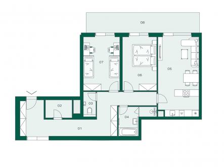 Základní informace o bytu: - Dispozice 3+kk a celková plocha 131.5 m2 - Nachází se ve 7. podlaží. - Balkon s výměrou 19.3 m2 - V dispozici je prostorný obývací pokoj s kuchyňským koutem a samostatn é WC - K jednotce náleží sklepní kóje o výměře 2.7 m2 - Jednotka ve standardu Fit out je dokončena do finálních povrchů včetně sanity a obsahuje přípravné body pro kuchyni Standardy: - Dřevěná třívrstvá podlaha - Dřevěné dveře - Dlažba a obklady v designu kamene Informace o projektu: - Posuvná velkoformátová okna, podlahové vytápění, rekuperace, chlazení, alternativní zdroje energie pro snížení nákladů (tepelná čerpadla a fotovoltaika) - Projekt má také střešní terasu přístupnou všem obyvatelům - 5 pater garáží - celkem 220 parkovacích stání pro automobily a 16 pro motorky - Samozřejmostí budou nabíjecí stanice pro elektromobily Lokalita: - Praha Modřany - Golfové hřiště s výhledy na Vyšehrad - Modřanská cyklostezka - Rozlehlý lesopark Hodkovičky - Divadlo Na Cikorce a nedaleké Divadlo Bravo - A pro milovníky kina je zde Modřanský biograf Restaurace a kavárny - Jen pár kroků od břehu najdete úžasný gastrokoncept Rosmarina zahrnující terasu, okénko, bistro se streetfoodem a restauraci. - Restaurace Cuga je zase součástí golfového hřiště Hodkovičky - V areálu bývalého modřanského cukrovaru je utajený klenot Cukrkandl s barem a kavárnou a také jedinečným zázemím nejen pro rodiny s dětmi - Na Sofijském náměstí v Modřanech probíhají sezónní farmářské trhy