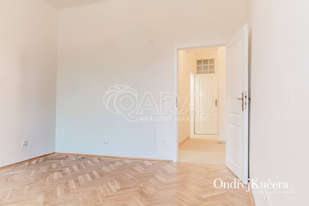 Kompletně zrekonstruovaný a světlý byt 2+kk s plochou 62 m2 se nachází v 5. patře skvěle udržovaného domu s výtahem na adrese Kaprova 52/6, Praha 1. Jde o secesní budovu v samotném srdci Prahy, v těsné blízkosti Staroměstského náměstí. Byt s vysokými stropy má a dva neprůchozí pokoje s původními leštěnými parketami. V jednom je plně vybavený kuchyňský kout. Prostorná předsíň se vstupy do všech místností, do komory s plynovým kotlem na topení a ohřev vody, do koupelny s přípojkou na pračku, umyvadlem a sprchovým koutem a vedle na samostatnou toaletu. Jde o exkluzivní lokalitu v centru města přímo na stanici metra A “Staroměstská” v domě. Zastávky tramvají i autobusů jsou za rohem. Je zde plno oblíbených kaváren, vyhlášených restaurací a všech potřebných obchodů. Kaprova ulice je jednou z nejatraktivnějších adres v Praze pro ty, kteří chtějí kombinovat historickou atmosféru, výbornou dopravní dostupnost a bohatou nabídku služeb kolem domu. Je zde možnost zřídit nejen bydlení, ale i lukrativní kancelářské prostory. Byt je k dispozici ihned s možností dlouhodobého pronájmu minimálně na rok a více. Nájemné činí 28.000 Kč měsíčně plus poplatky 900 Kč za osobu. Plyn a elektřina se přepisují na nájemce. V domě není možné provozovat krátkodobé pronájmy. Tato adresa je jako stvořená pro milovníky kaváren, historie, designu a kulturního dění. Pro více informací mě neváhejte kontaktovat Ondřej Kučera osobní realitní makléř