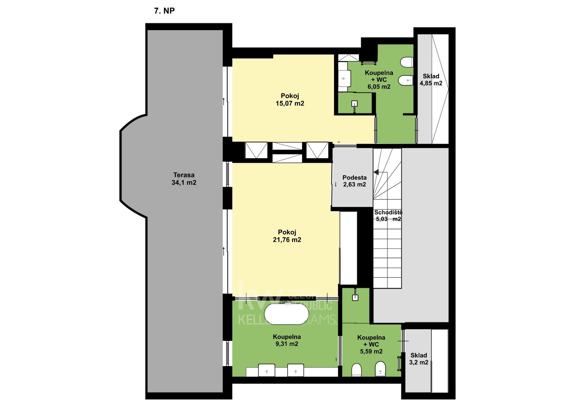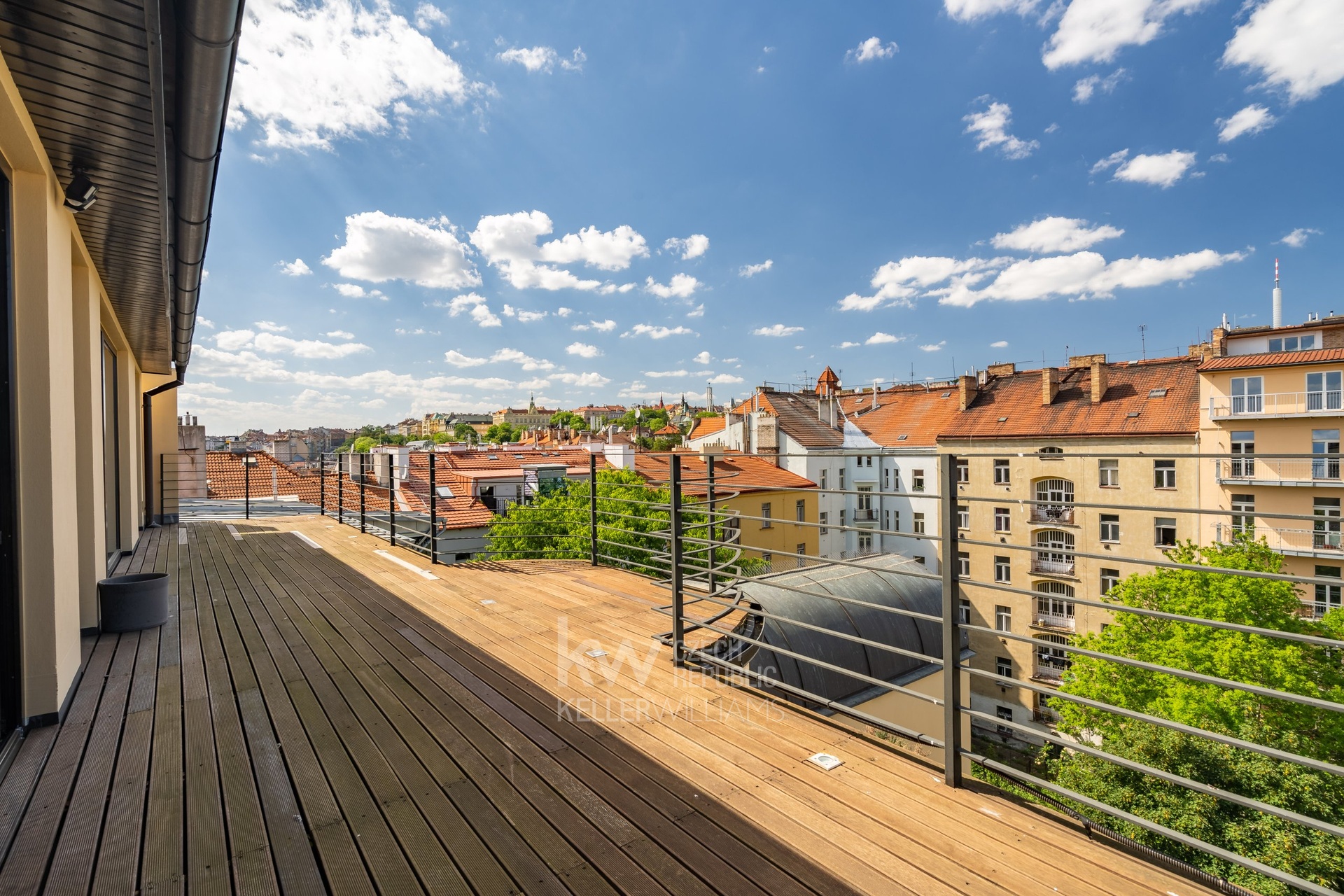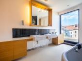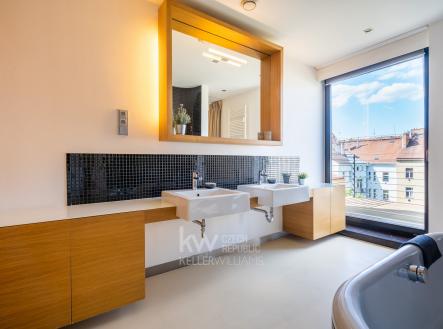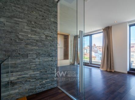 Bydlete ve výjimečném mezonetovém bytě s dispozicí 5+1 s velkorysou plochou přes 260 m2, včetně tří teras. Tento unikátní byt k pronájmu se nachází v 6. a 7. patře renovovaného činžovního domu s výtahem a garáží, ve Vršovicích v Kodaňské. Dispozici bytu tvoří v prvním patře velký obývací prostor s krbem s výměrou 54 m2 a kuchyň s jídelnou a přístupem na terasu orientovanou do klidného vnitrobloku. Dále pak pokoj s vlastní terasou a koupelnou, samostatná pracovna, technická místnost s pračkou a sušičkou a velkou šatnou. Ve druhém patře jsou 2 ložnice. Hlavní ložnice má 25 m2 s úložnými prostory a k tomu 2 koupelny. I druhá ložnice má vlastní koupelnu. Oba pokoje mají přístup na terasu (34 m2). Provedení bytu je nadstandardní - jednak svým dispozičním uspořádáním - velké pokoje, 4 koupelny, úložné prostory, terasy. Ale také architektonické prvky - např. vysoké prosklené dveře, stěrkové povrchy nebo vestavěný nábytek. To vše s decentním využitím moderních materiálů - dřevo, kámen, sklo a kov. Velkou předností tohoto domu je možnost využívat parkovací místa v zakladači společných garáží v 1. podzemním podlaží. Součástí pronájmu bytu je jedno parkovací místo. Další místa jsou k dispozici po dohodě. K využití je také společná zahrada ve vnitrobloku. Lokalita Vršovic - to je krásné prostředí ozdobných činžovních domů. Dům sousedí s Heroldovými sady a o kousek dále je přímo oblíbená Gröbovka. Okolí nabízí veškerou občanskou vybavenost a přímé spojení do centra Prahy. Byt je volný od dubna. Pro více informací a objednání na prohlídku nás neváhejte kontaktovat, nejlépe prostřednictvím formuláře u inzerce či e-mailem.