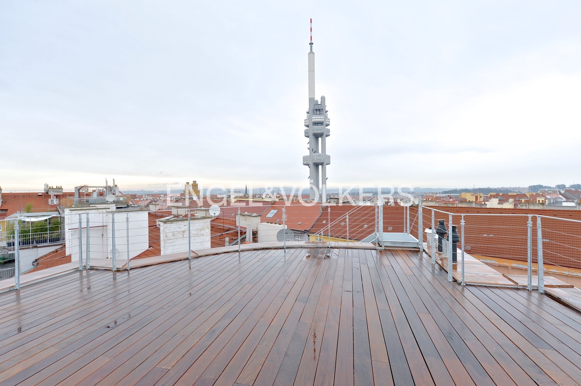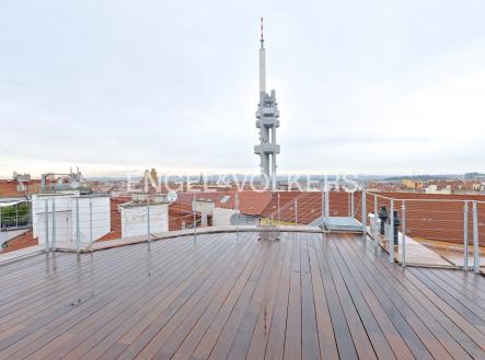 Historický činžovní dům po kompletní rekonstrukci v nejžádanější lokalitě v Praze, přímo na nám. Jiřího z Poděbrad. Reprezentativní společné prostory domu. Rekonstrukce dbala na zachování všech originálních dekoračních i architektonických prvků domu. Na rekonstrukci byly použity kvalitní obklady a sanitární vybavení, na podlahách jsou položeny masivní palubky. Apartmán se nachází v nejvyšším podlaží činžovního domu a jeho dominantou jsou 2 terasy o celkové ploše 100 m2, které Vás uchvátí inspirativními výhledy po celé Praze. Centrální místností bytu je prostorný a světlý obývací pokoj s kuchyňským koutem a jídelním prostorem. Kompletně zařízená kuchyň je vybavená kvalitními spotřebiči. Ložnice nabízí vestavěné úložné prostory. Byt dále disponuje koupelnou se sprchovým koutem, samostatnou toaletou, vstupní halou s množstvím vestavěných úložných prostor, pračkou a sušičkou. Garážové stání lze zajistit v Žižkovské věži, zastávka metra je pár kroků od domu.