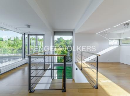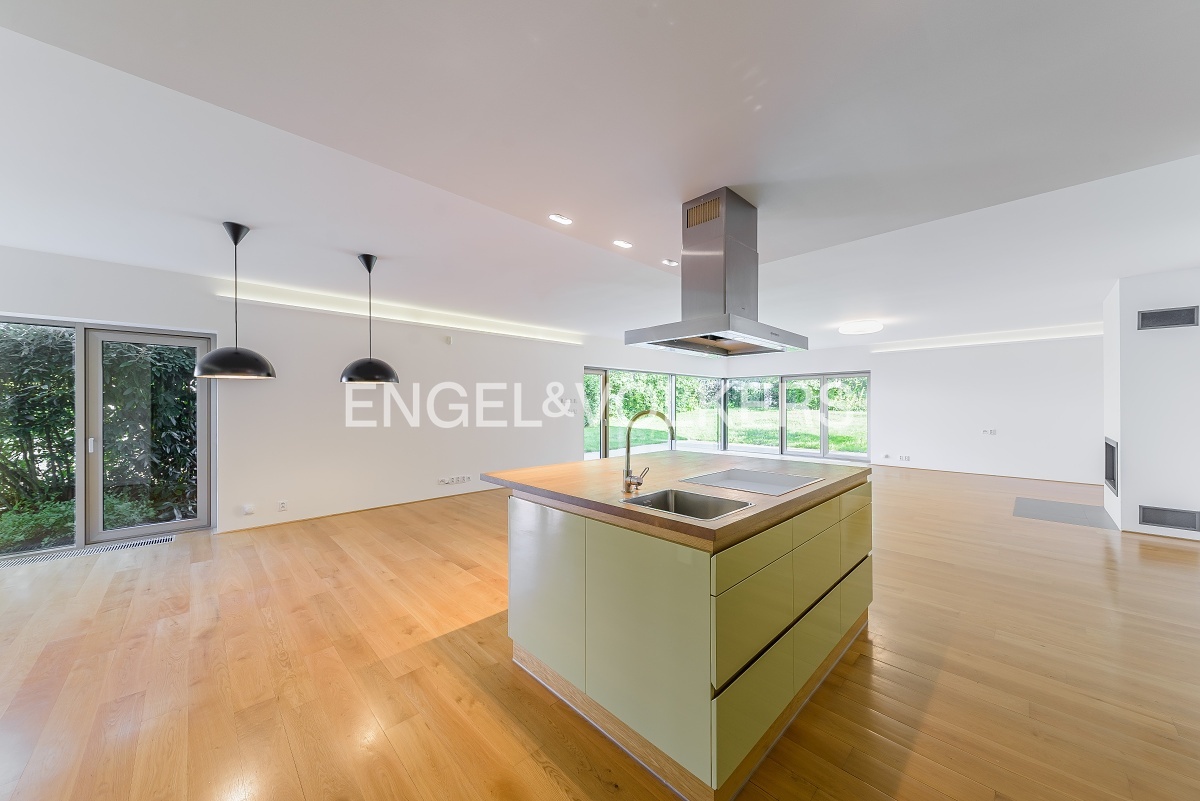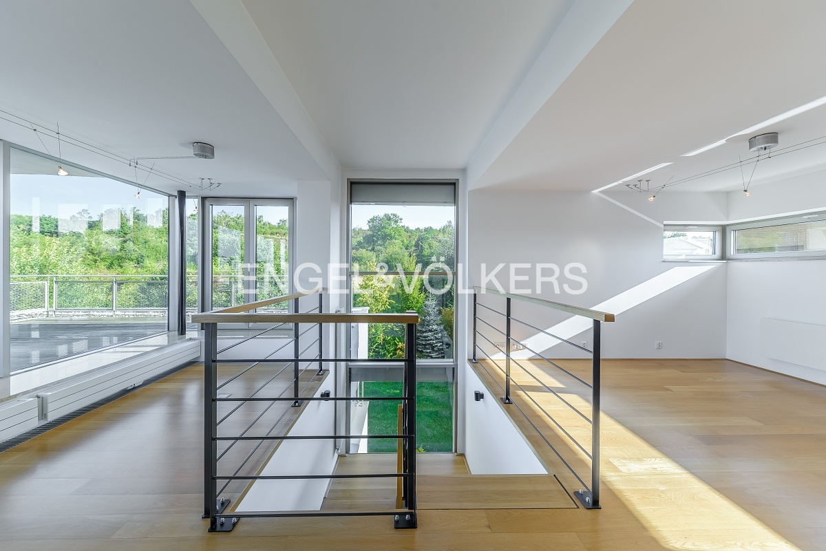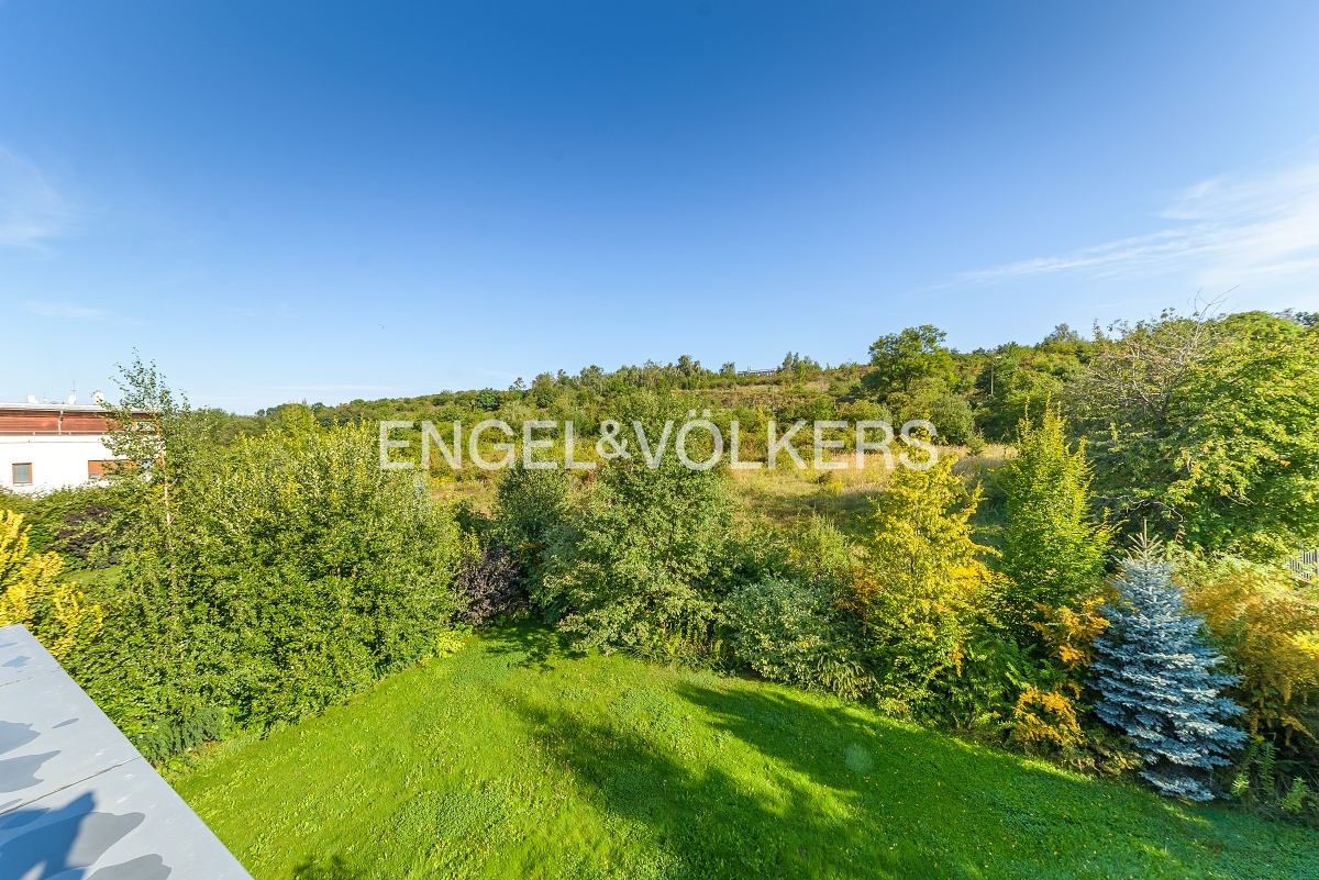 K pronájmu od 1. 12. 2025 je připraven bezbariérový rodinný dům s výtahem v blízkosti Německé školy. Velkorysá dispozice domu se šesti ložnicemi, pěti koupelnami, extra toaletami, prostorným obývacím pokojem a velkorysou plně vybavenou kuchyní se všemi spotřebiči. Vstupní patro slouží jako společenská část s prostorným obývacím pokojem s krbem, plně vybavenou kuchyní, pracovnou a vstupem na klidnou zahradu. Další patra slouží jako privátní část s pěti ložnicemi, se šatnami a koupelnami. Poslední patro domu je možné využít jako samostatnou jednotku díky menší kuchyni. Též je zde vstup na prostornou terasu s výhledy do okolní zeleně a na zahradu. K domu náleží velký sklep a mnoho úložných prostor. Parkování v kryté garáži pro dva automobily. Poplatky včetně zúčtovatelných záloh přibližně 10 000 Kč.