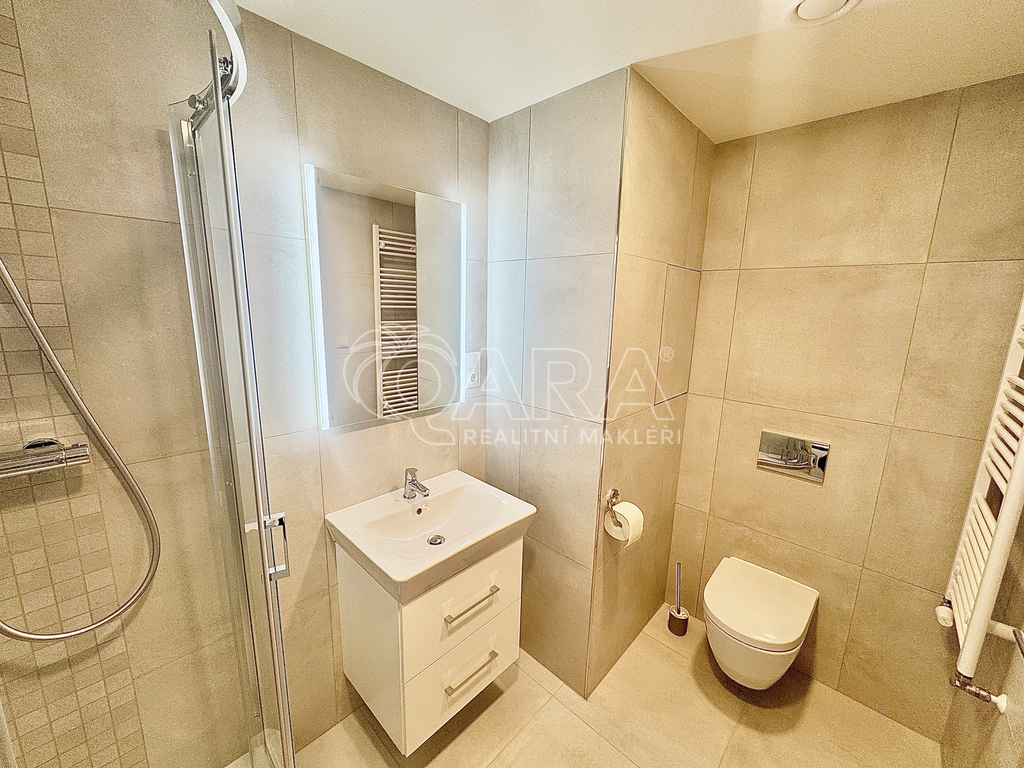 Nový byt o dispozici 1+kk se nachází ve 6. nadzemním podlaží moderního projektu Rezidence Tesla Hloubětín. Rezidence nabízí příjemné a klidné bydlení s výbornou dopravní dostupností i plnou občanskou vybaveností v okolí. Dispozici bytu tvoří vstupní chodba s vestavěnou skříní, hlavní obytná místnost s kuchyňským koutem, dále koupelna se sprchovým koutem a toaletou. Kuchyňská linka je plně vybavena spotřebiči – k dispozici je myčka, mikrovlnná trouba, trouba, elektrická varná deska a digestoř. Velká lednice s mrazákem. V koupelně je pračka se sušičkou. Byt je vybaven rekuperační jednotkou, která pomaha šetřit na vytapení bytu. Velkým benefitem bytu je prostorná lodžie orientovaná do vnitrobloku, která poskytuje příjemné soukromí. Byt se pronajímá jako nezařízený. K bytu je možné pronájmout garažové stání za 2.000 Kč/měs. Byt je k dispozici ihned. Měsíční poplatky činí 2 486 Kč, elektřina bude převedena na nájemce. Kauce je stanovena ve výši 38 000 Kč. Provize realitní kanceláře činí 9.450 Kč.