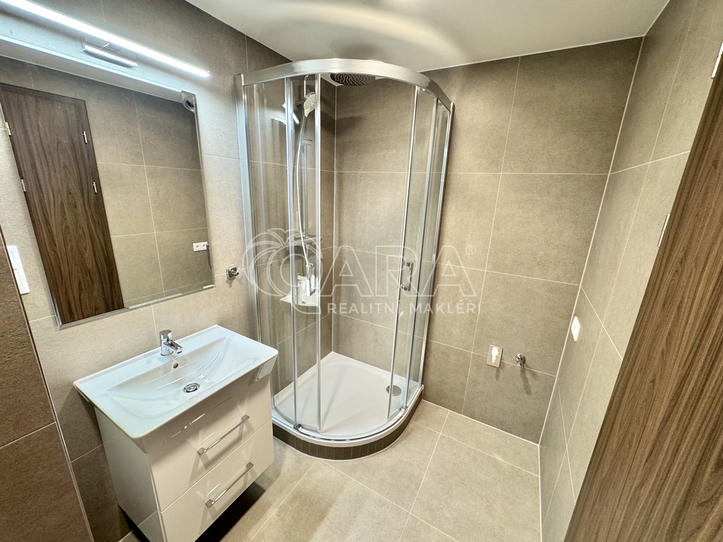 Nový byt o dispozici 1+kk se nachází ve 3. nadzemním podlaží moderního projektu Rezidence Tesla Hloubětín. Rezidence nabízí příjemné a klidné bydlení s výbornou dopravní dostupností i plnou občanskou vybaveností v okolí. Dispozici bytu tvoří vstupní chodba s vestavěnou skříní, hlavní obytná místnost s kuchyňským koutem a rekuperační jednotkou a dále koupelna se sprchovým koutem a toaletou. Kuchyňská linka je plně vybavena spotřebiči – k dispozici je myčka, mikrovlnná trouba, trouba, elektrická varná deska a digestoř. Lednice s mrazákem bude dodána. V koupelně je k dispozici pračka. Velkým benefitem bytu je prostorná lodžie orientovaná do vnitrobloku, která poskytuje příjemné soukromí. Byt se pronajímá jako nezařízený. V případě zájmu je možné dovybavení dle dohody. Součástí pronájmu je také sklepní kóje. Byt je k dispozici ihned. Měsíční poplatky činí 2 467 Kč, elektřina bude převedena na nájemce. Kauce je stanovena ve výši 40 000 Kč. Provize realitní kanceláře činí 10 000 Kč.