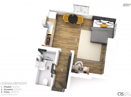 Byt 1+kk, sklep, OV, 29 m2, cihla
