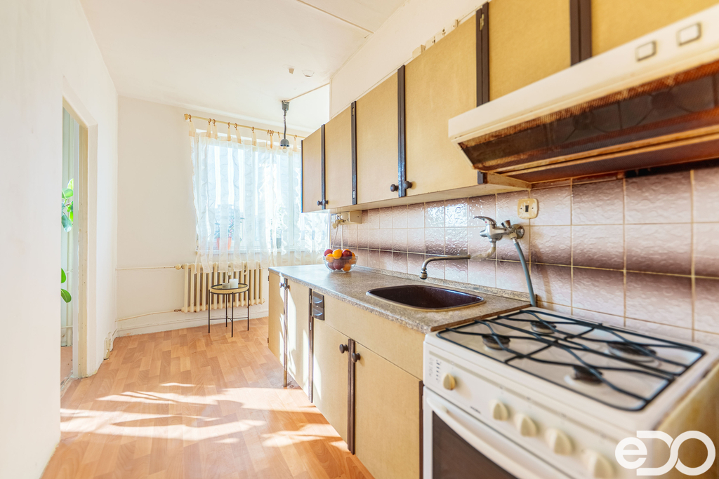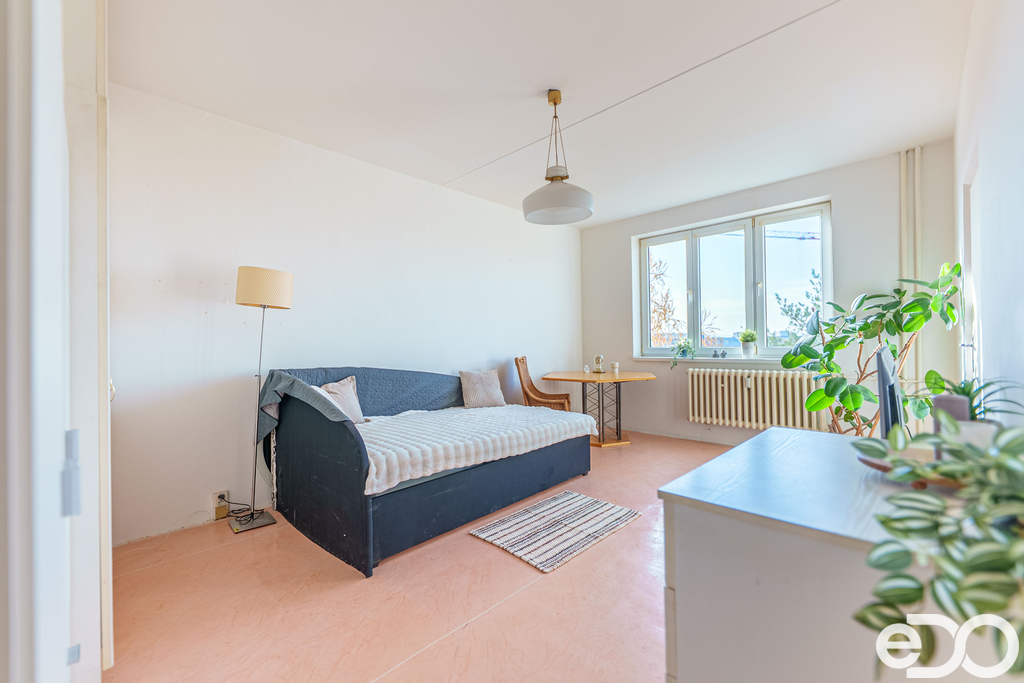 Realitní kancelář eDO Reality Vám exkluzivně nabízí byt 2+1 o výměře 56,94 m², balkonem (5,44 m²) a sklepní kójí (1,20 m²), umístěný ve 4. nadzemním podlaží (3. patře) panelového domu v klidné části Praha 4 – Kamýk. Byt je v původním stavu, včetně elektroinstalace a umakartového jádra – ideální příležitost k rekonstrukci přesně podle vlastních představ. Obě obytné místnosti jsou neprůchozí, mají stejnou velikost a vlastní okno, díky čemuž je dispozice přirozeně vyvážená a nabízí dostatek soukromí. Okna jsou orientována na jihozápad, takže je byt po celý den příjemně prosvětlený. Okno je také v centrální části bytu, kde se nachází kuchyně s koupelnou a toaletou. Tato část bytu je tvořena nenosnými příčkami, což umožňuje velmi flexibilní úpravy – například propojení kuchyně s obývacím pokojem, vytvoření větší koupelny nebo zcela nové řešení jádra. Byt tak poskytuje tři samostatné prosvětlené zóny, které lze snadno přetvořit do moderní podoby, a nabízí příjemný výhled do zeleně a směrem k lesu. K jednotce náleží balkon v mezipatře o velikosti 5,44 m² s výhledem do zeleně a sklepní kóje 1,20 m², oba prostory jsou ve výlučném užívání vlastníka. Dům prošel základní revitalizací – má novou fasádu, zateplení a plastová okna. Společné prostory jsou čisté a udržované. Lokalita Praha 4 – Kamýk nabízí skvělé propojení přírody a městské vybavenosti: Kamýcký les, Modřanská rokle, koupaliště Lhotka, školy, školky, obchody a výborné dopravní spojení na metro C Kačerov i budoucí metro D.