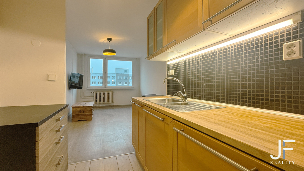 Praktický byt 2+kk s výtahem a sklepem nedaleko obchodního centra Harfa. Lokalita na rozhraní Vysočan a Libně, jen pár minut chůze od UNYP Areny, OC Harfa, stanice metra a dalších objektů občanské vybavenosti a dopravní dostupnosti. Hledáte více méně skromné bydlení s dobrou dopravní dostupností a vším potřebným po ruce? Tento byt o dispozici 2+kk a výměře cca 40 m² se nachází v 6. podlaží panelového domu s dvěma výtahy. Byt prošel částečnou rekonstrukcí – koupelna se sprchovým koutem a pračkou je zcela nová, a to včetně odděleného WC. Kuchyně je vybavena myčkou, digestoří, varnou plochou a zánovní lednicí s mrazákem. Nechybí ani pračka a televizor. Prakticky řešený interiér nabídne dostatek úložných prostor – skříně v bytě jsou součástí vybavení, navíc bude mít zájemce sklepní kóji. Elektřina se převádí na nájemce, zálohy na služby činí přibližně 4.000 Kč měsíčně. Kauce je 30.000 Kč. Rezervační poplatek započtený na provizi je jeden nájem.